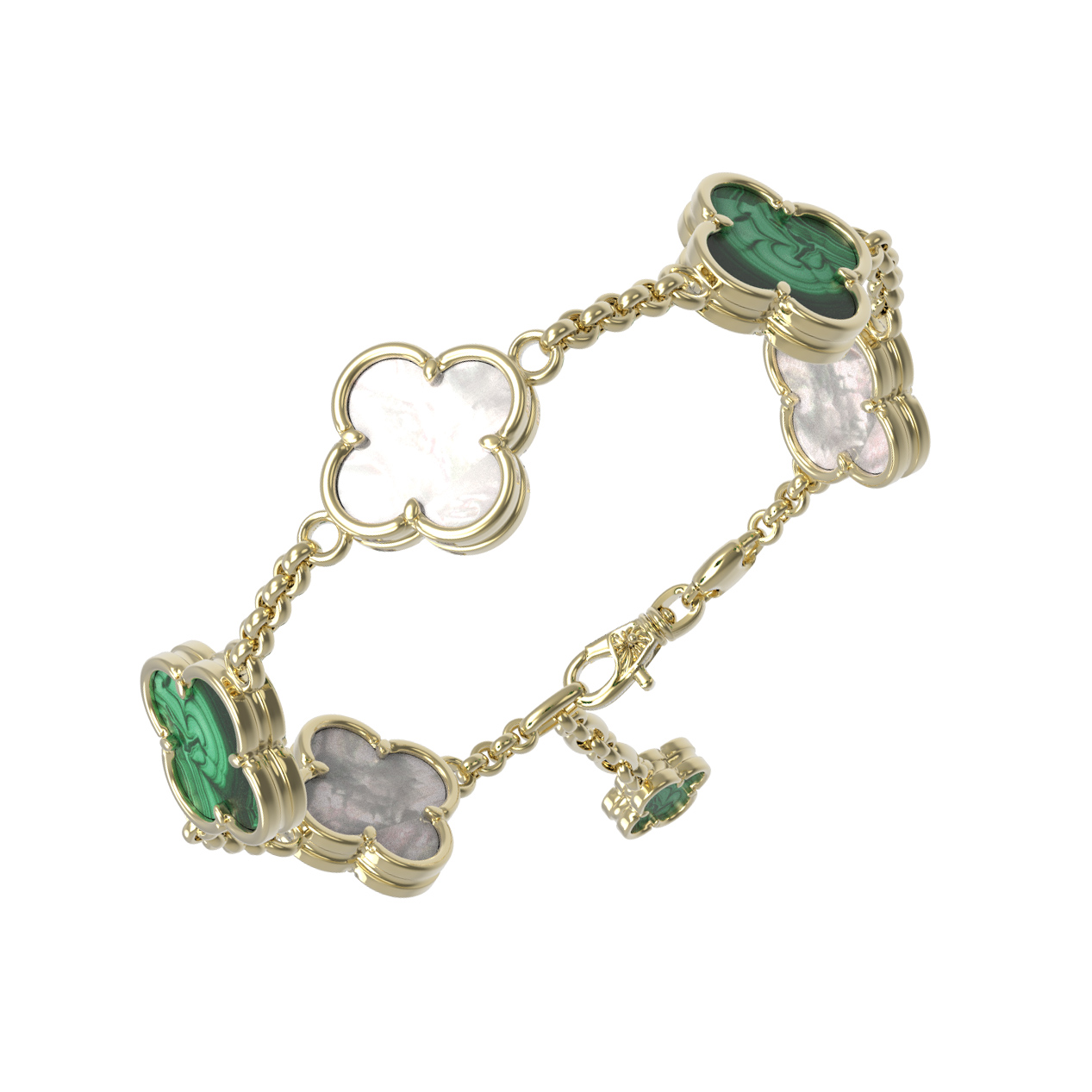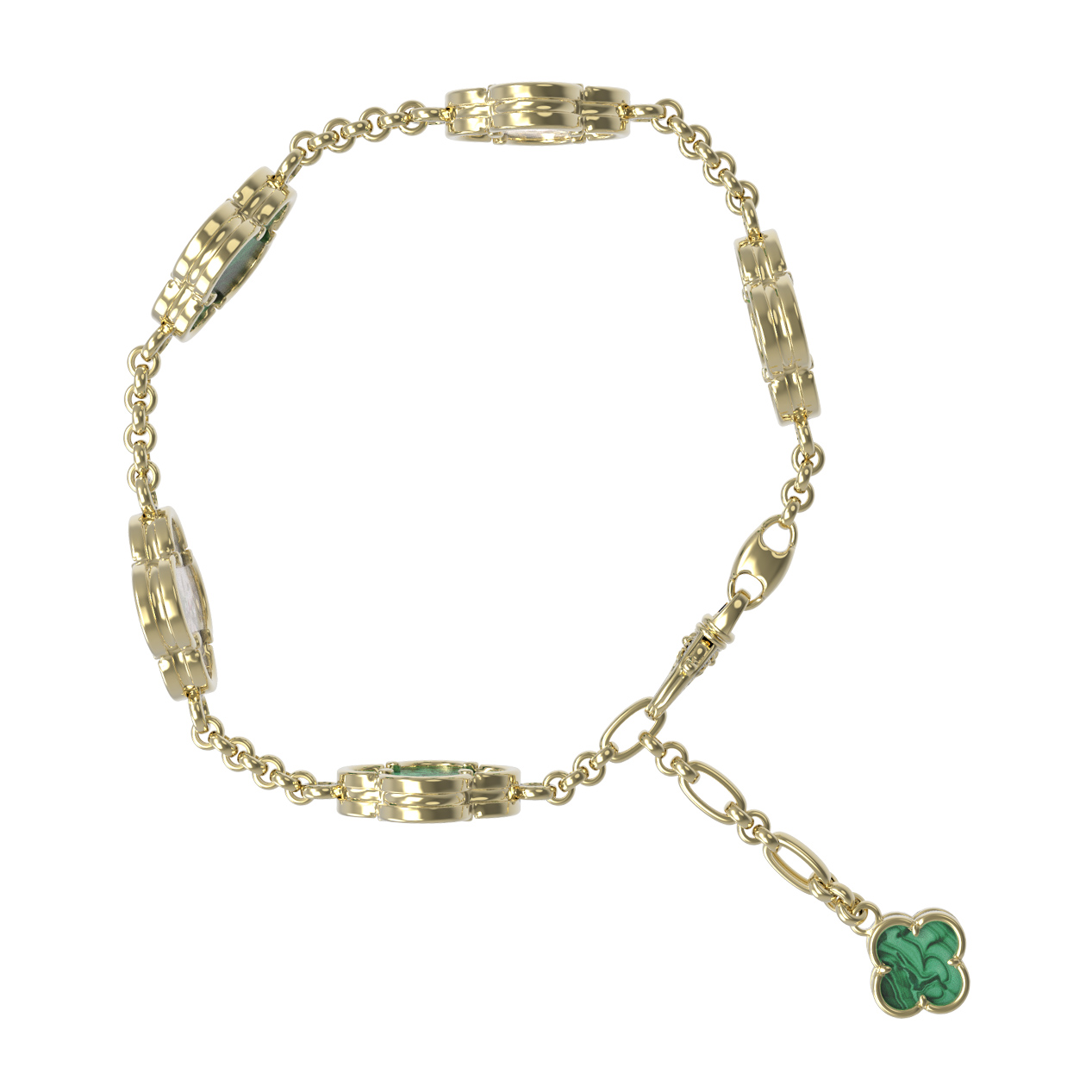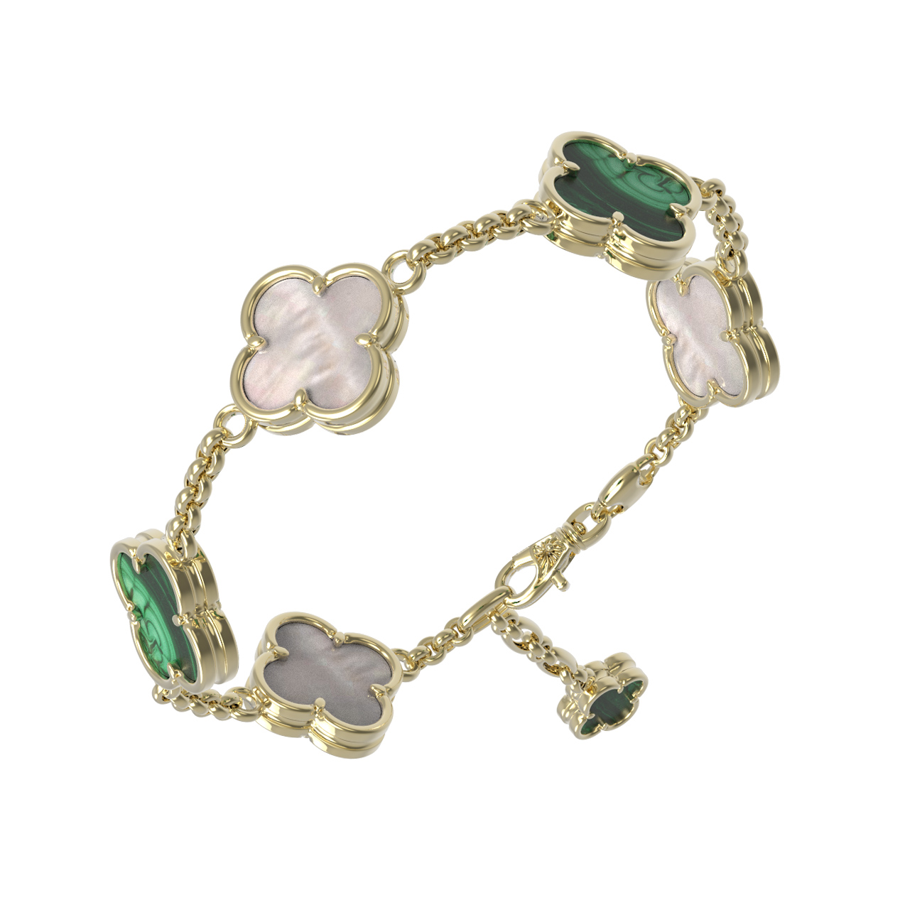 Браслет из лимонного золота c малахитом и перламутром