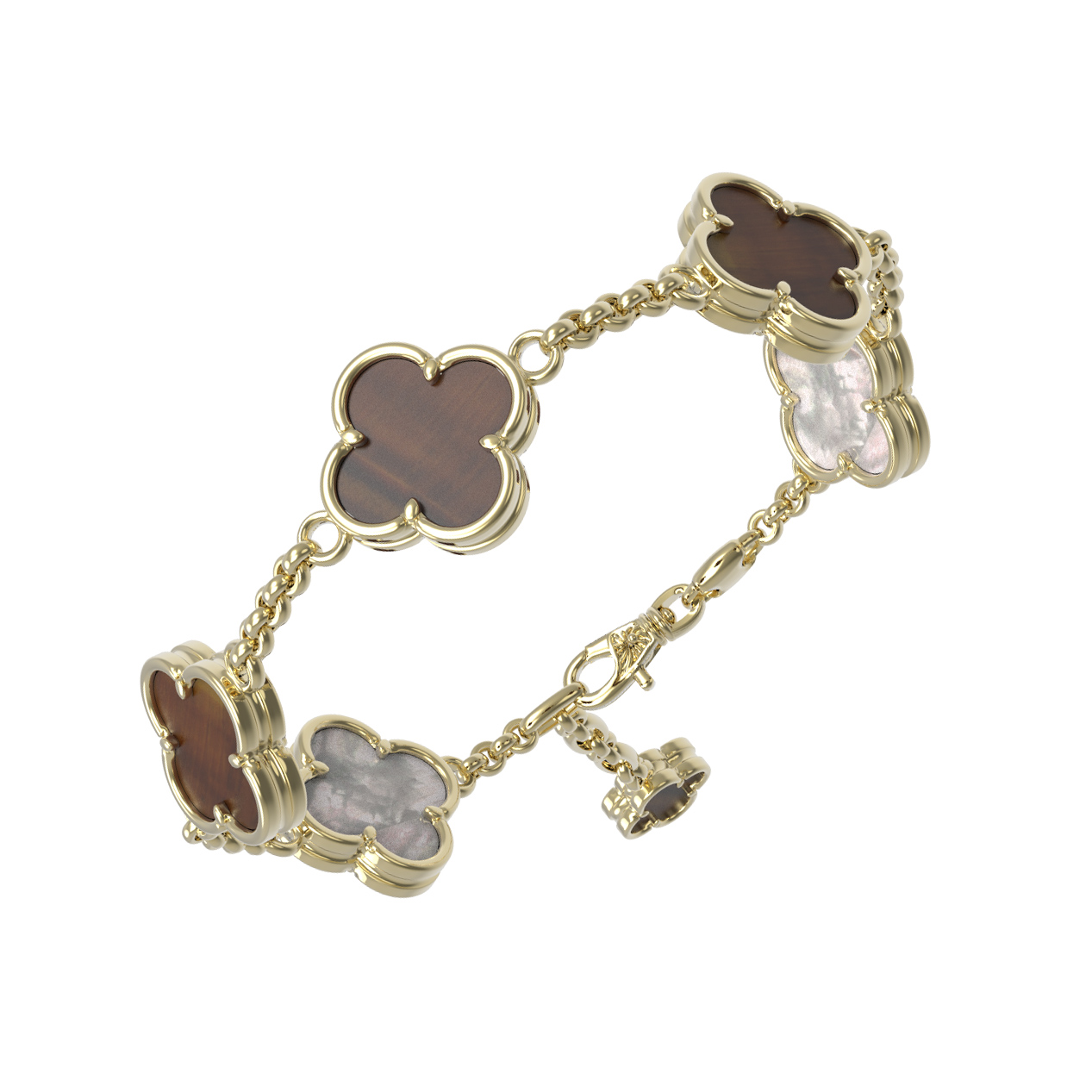 Браслет из лимонного золота c тигровым глазом и перламутром