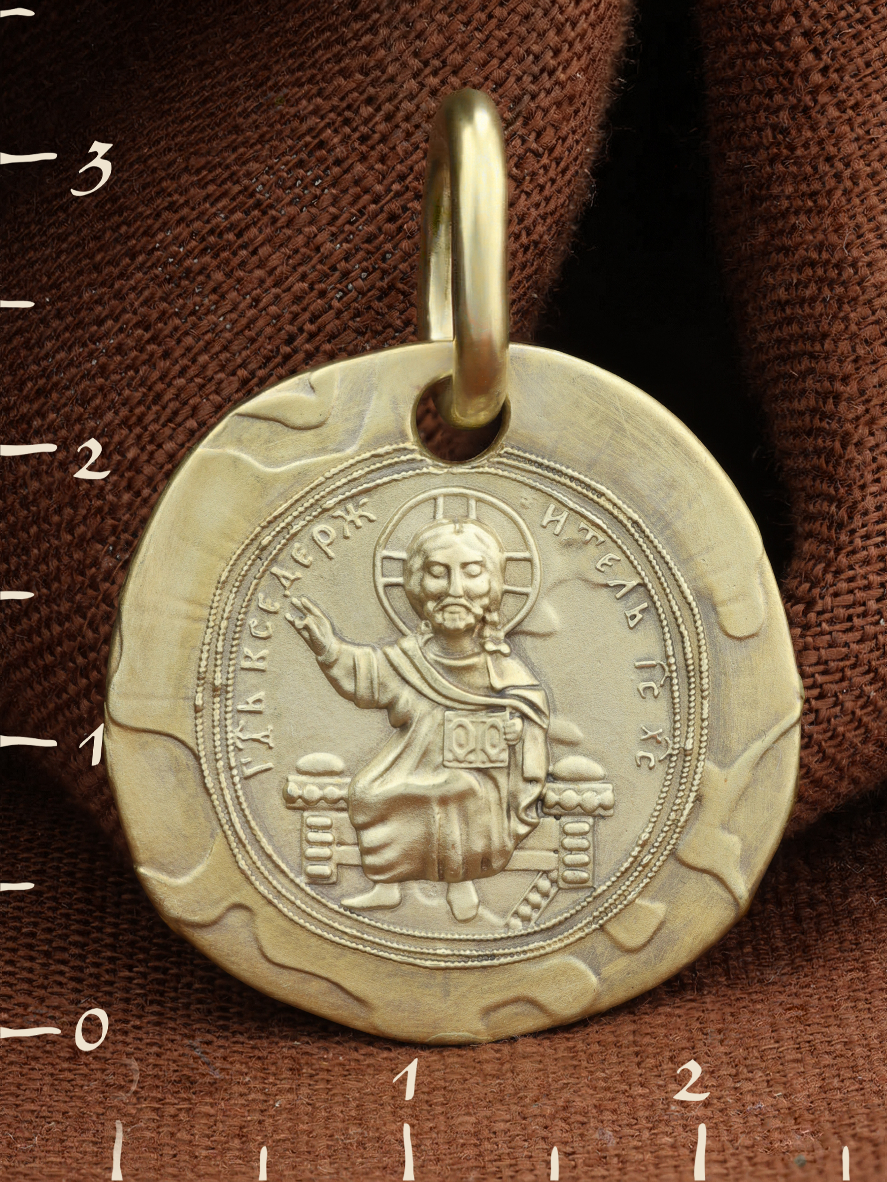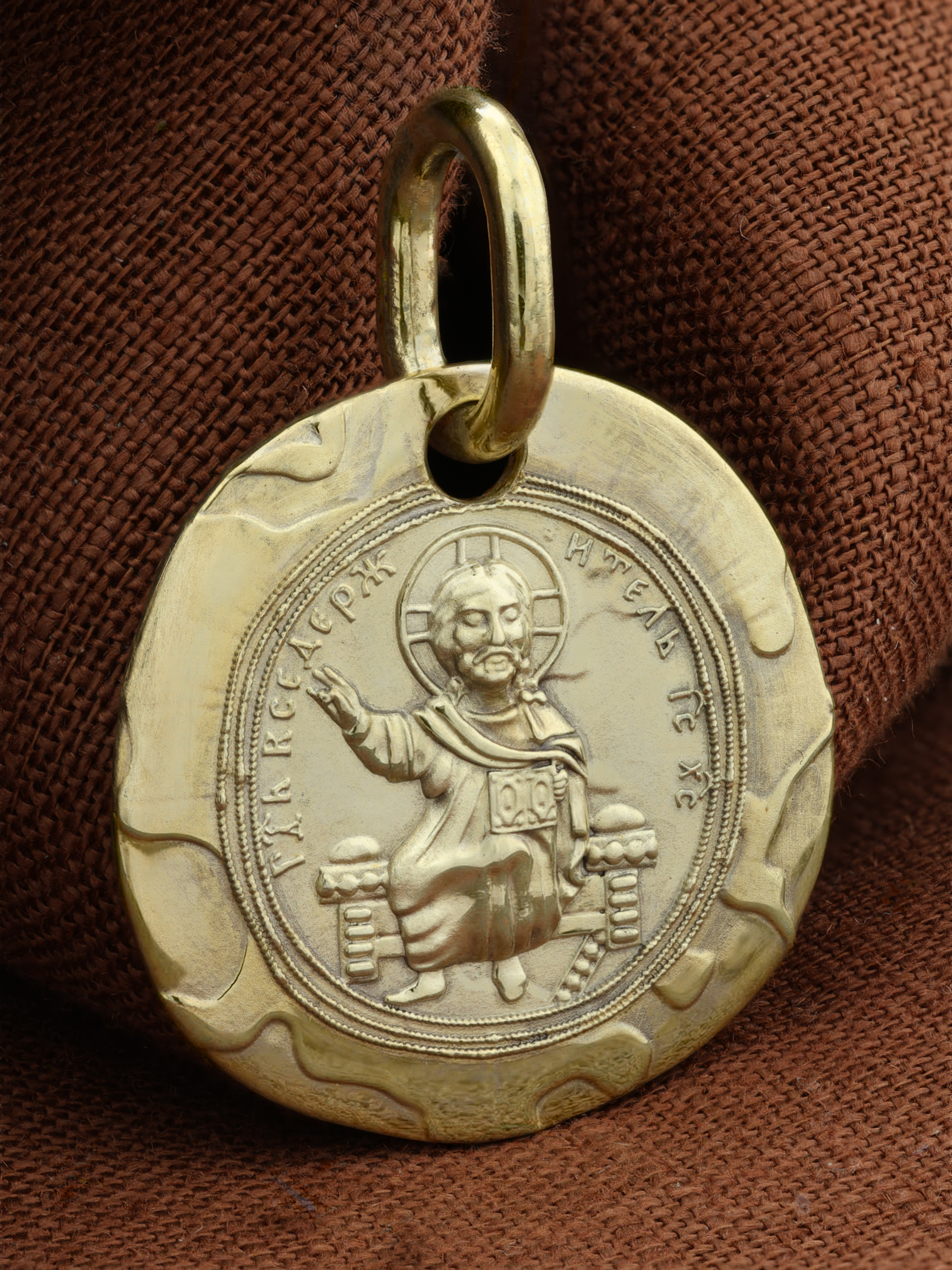 На лицевой стороне образка размещен образ Господа и Спасителя нашего Иисуса Христа  — Господь Вседержитель или Пантократор (от греч. всевластный, всесильный). Он представлен как Царь Небесный и будущий Судия мира. Именование Иисуса «Вседержителем» указывает, с одной стороны, на Его Божественную природу: «Аз есмь Альфа и Омега, начало и конец, говорит Господь, Который есть и был и грядет, Вседержитель» (Откр. 1: 8). С другой стороны, такое именование связано и с человеческой природой Христа, искупившего крестной жертвой людские грехи и обновившего тем самым человеческую природу. Правой рукой Он благословляет, а левой держит Книгу. Она символизирует Евангелие — благую весть, принесенную Христом всему миру, а также и Книгу Жизни, где записаны имена всех, возлюбивших Бога. Указывая на раскрытое Евангелие и одновременно благословляя, Иисус недвусмысленно указывает нам путь к спасению души