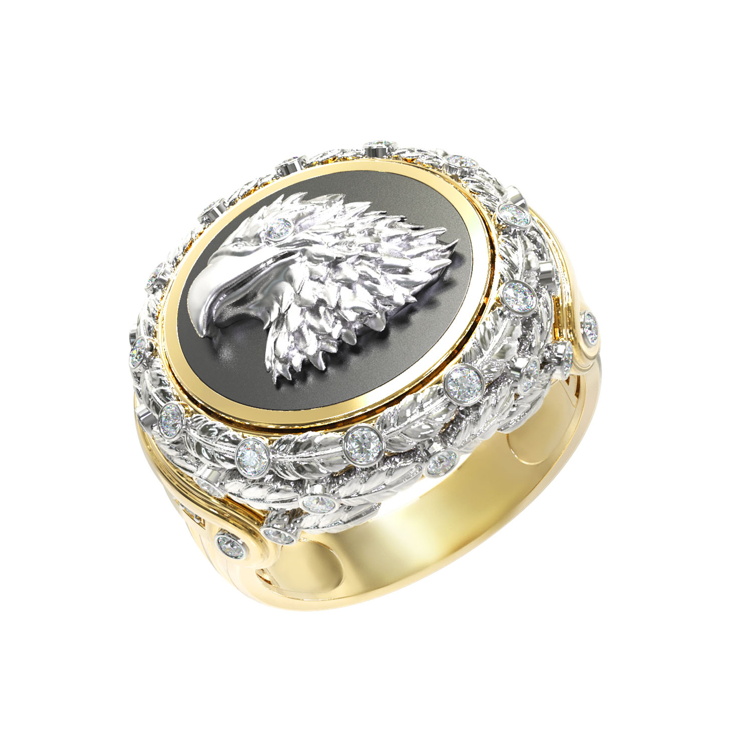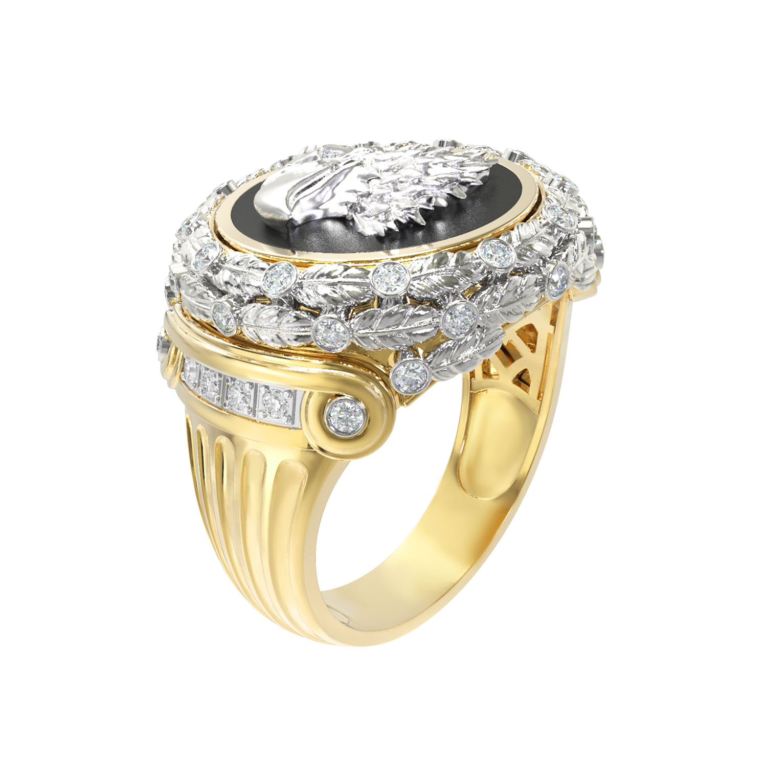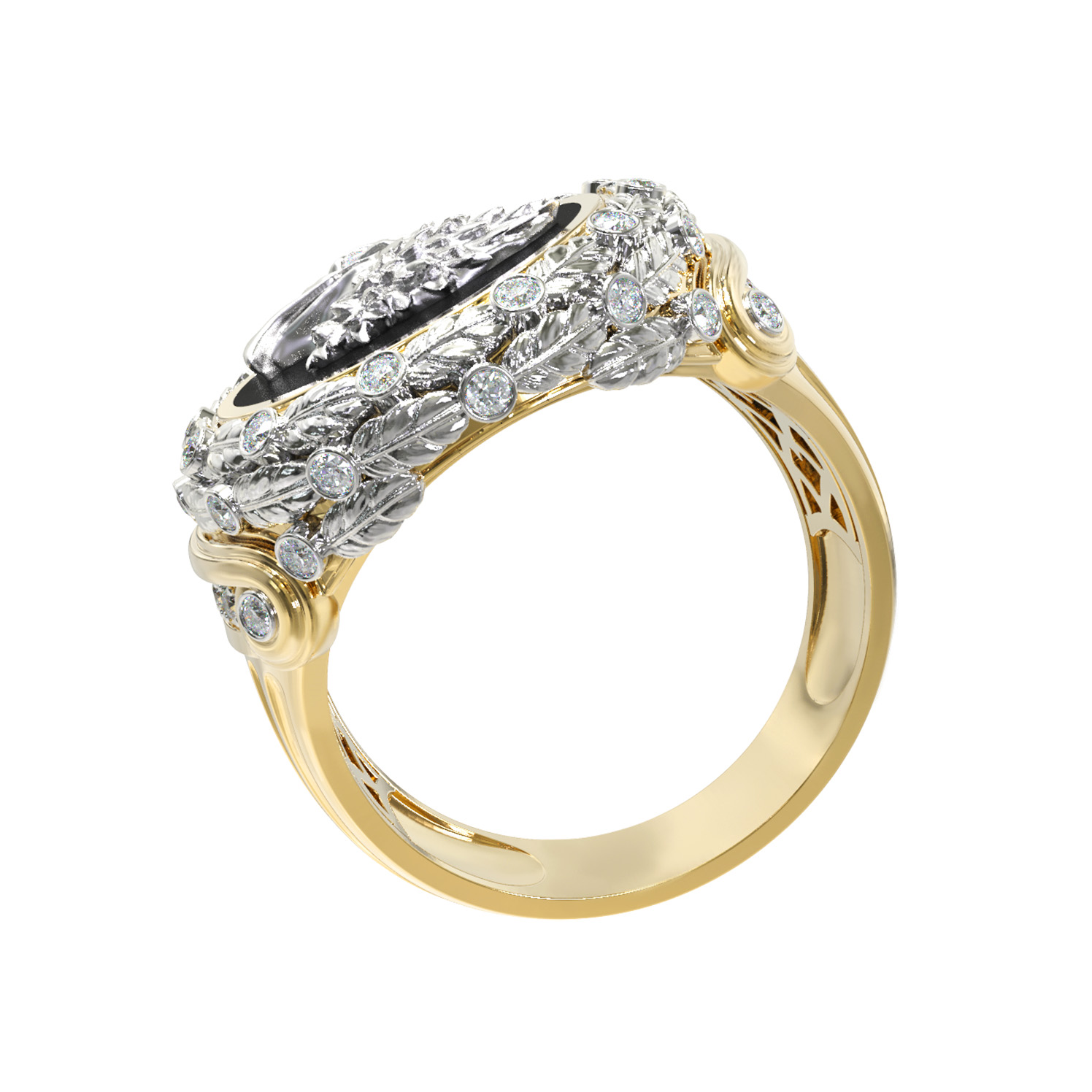 Кольцо из лимонного золота c бриллиантами и ониксом