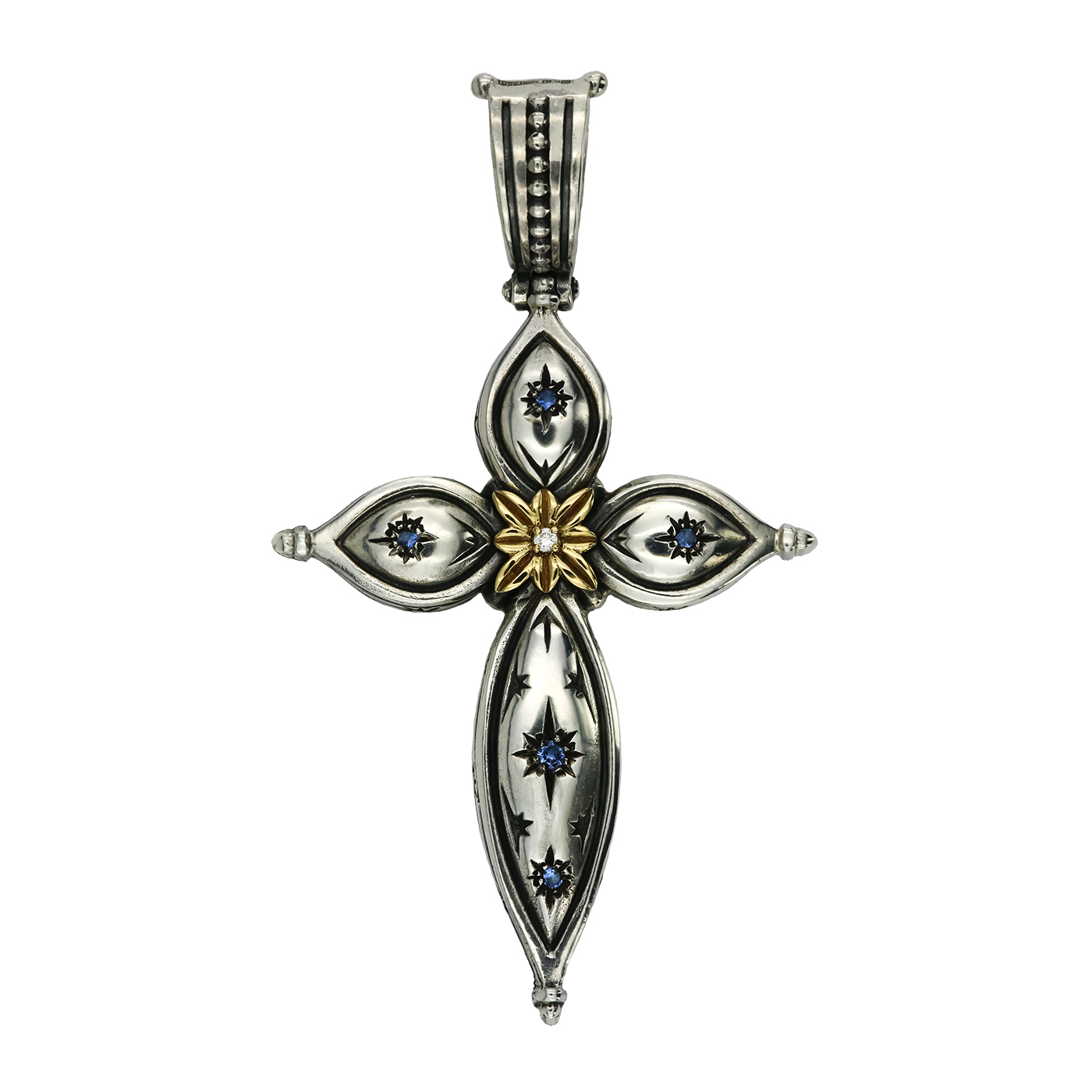Крест из серебра и золота c фианитом, бриллиантами и рубином