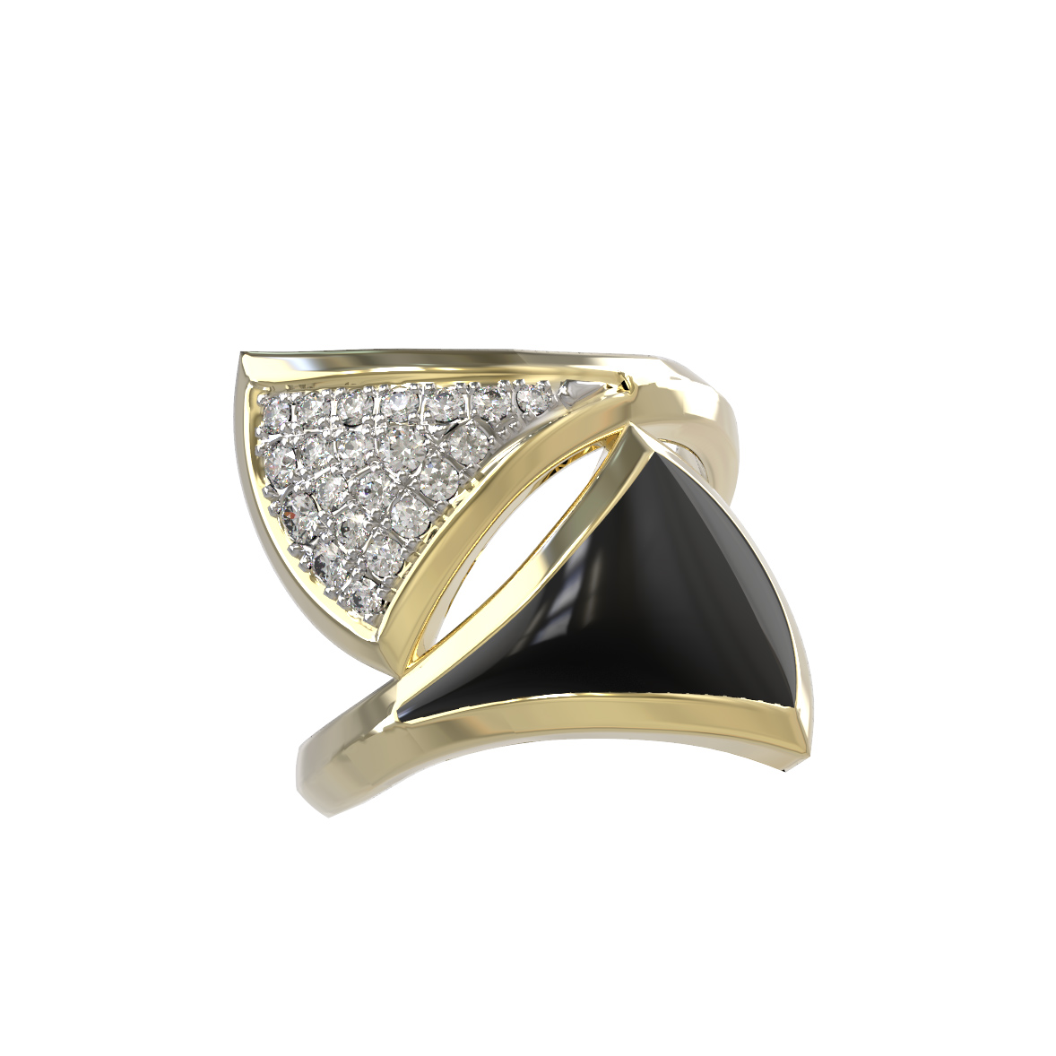 Кольцо из лимонного золота c бриллиантами и ониксом