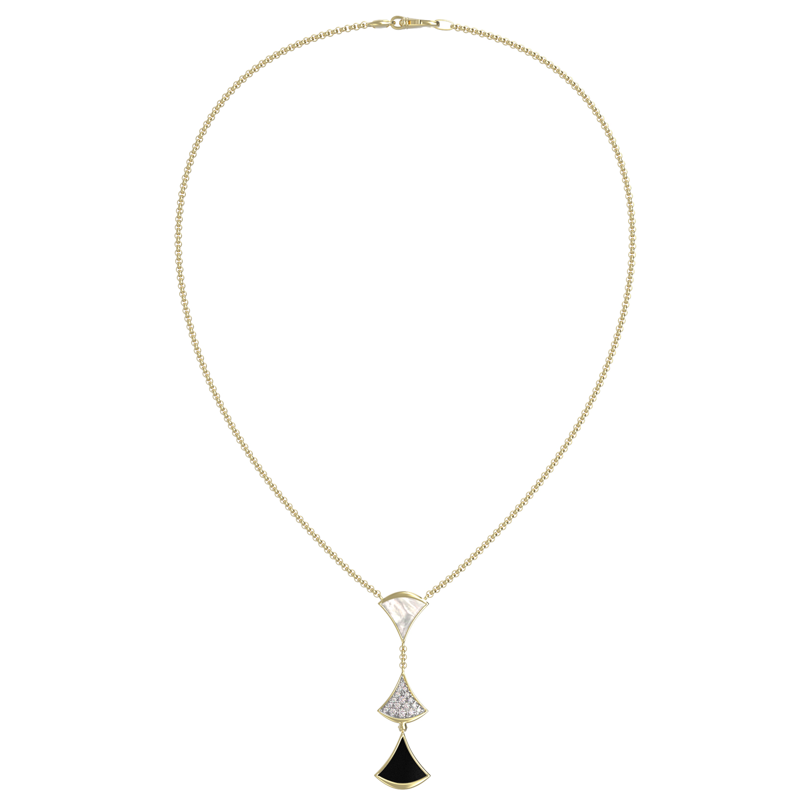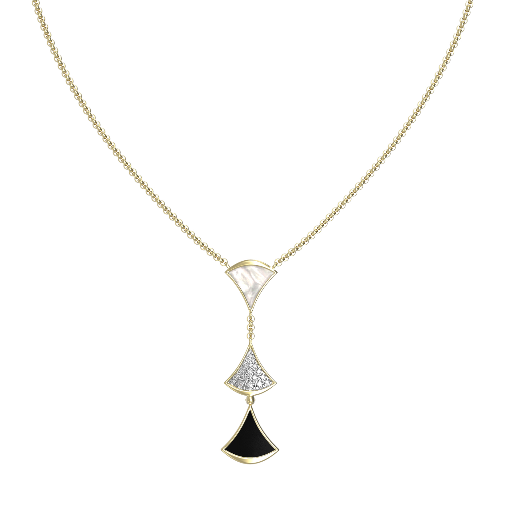 Колье из лимонного золота c бриллиантами, ониксом и перламутром