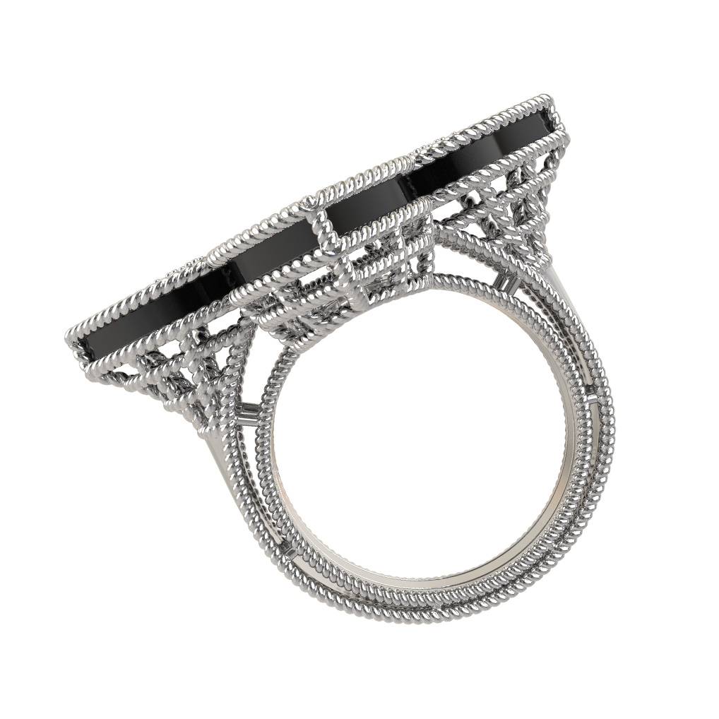 Кольцо из белого золота c бриллиантами и ониксом