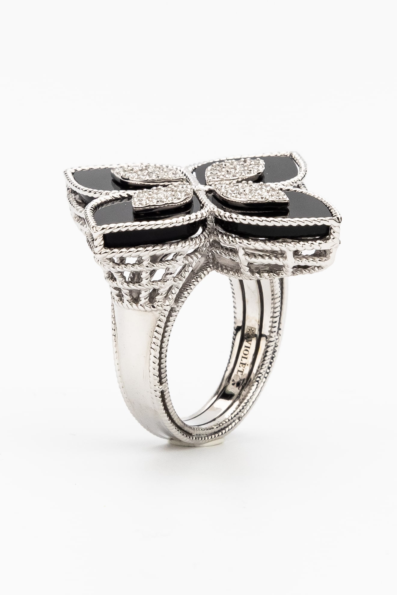 Кольцо из белого золота c бриллиантами и ониксом