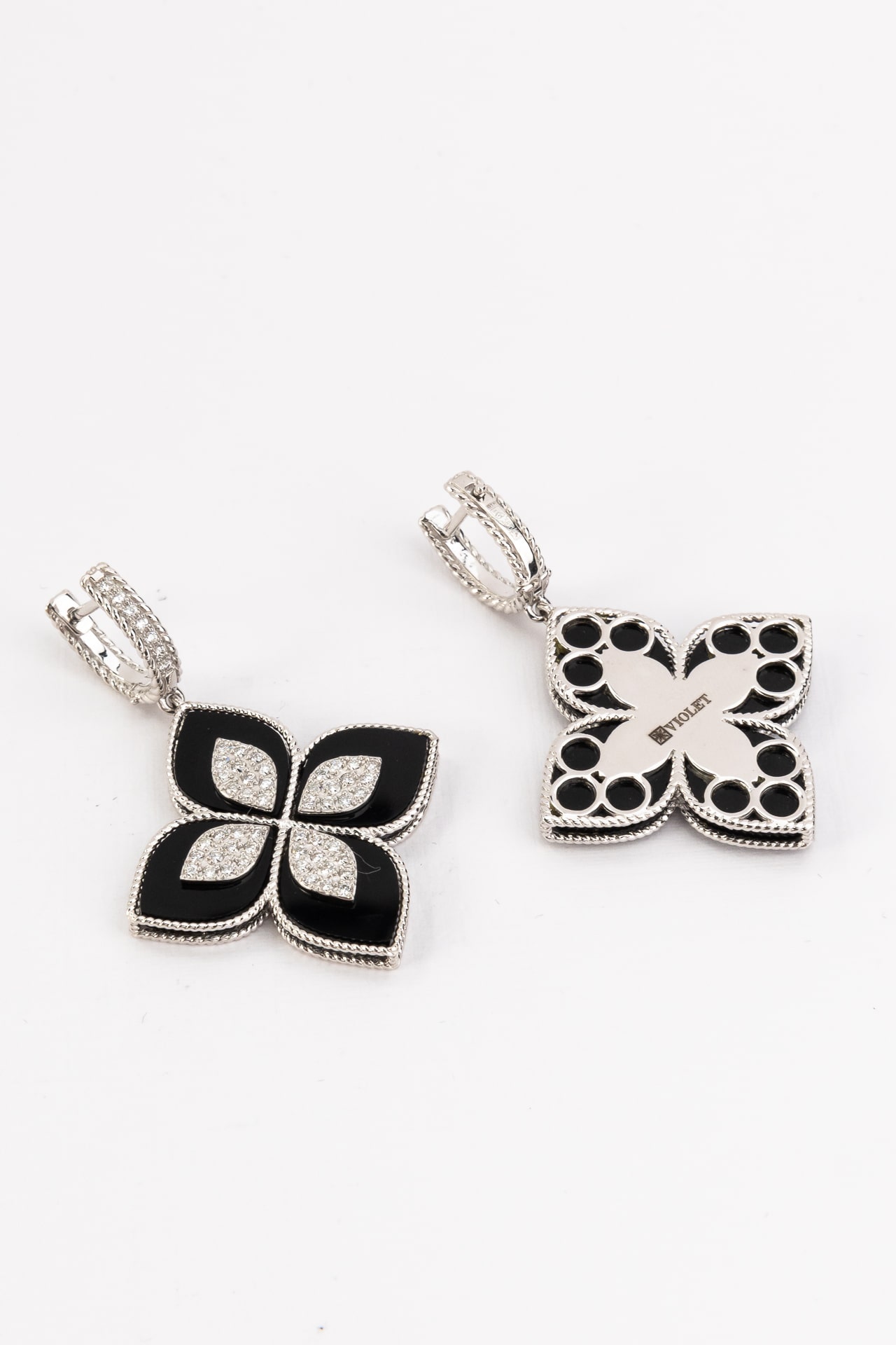 Серьги из белого золота c бриллиантами и ониксом