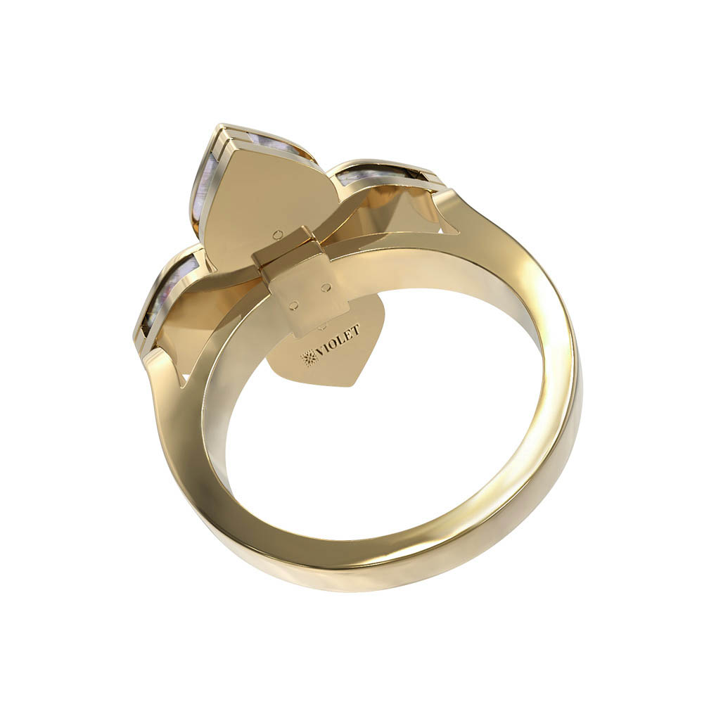 Кольцо из лимонного золота c бриллиантами и перламутром