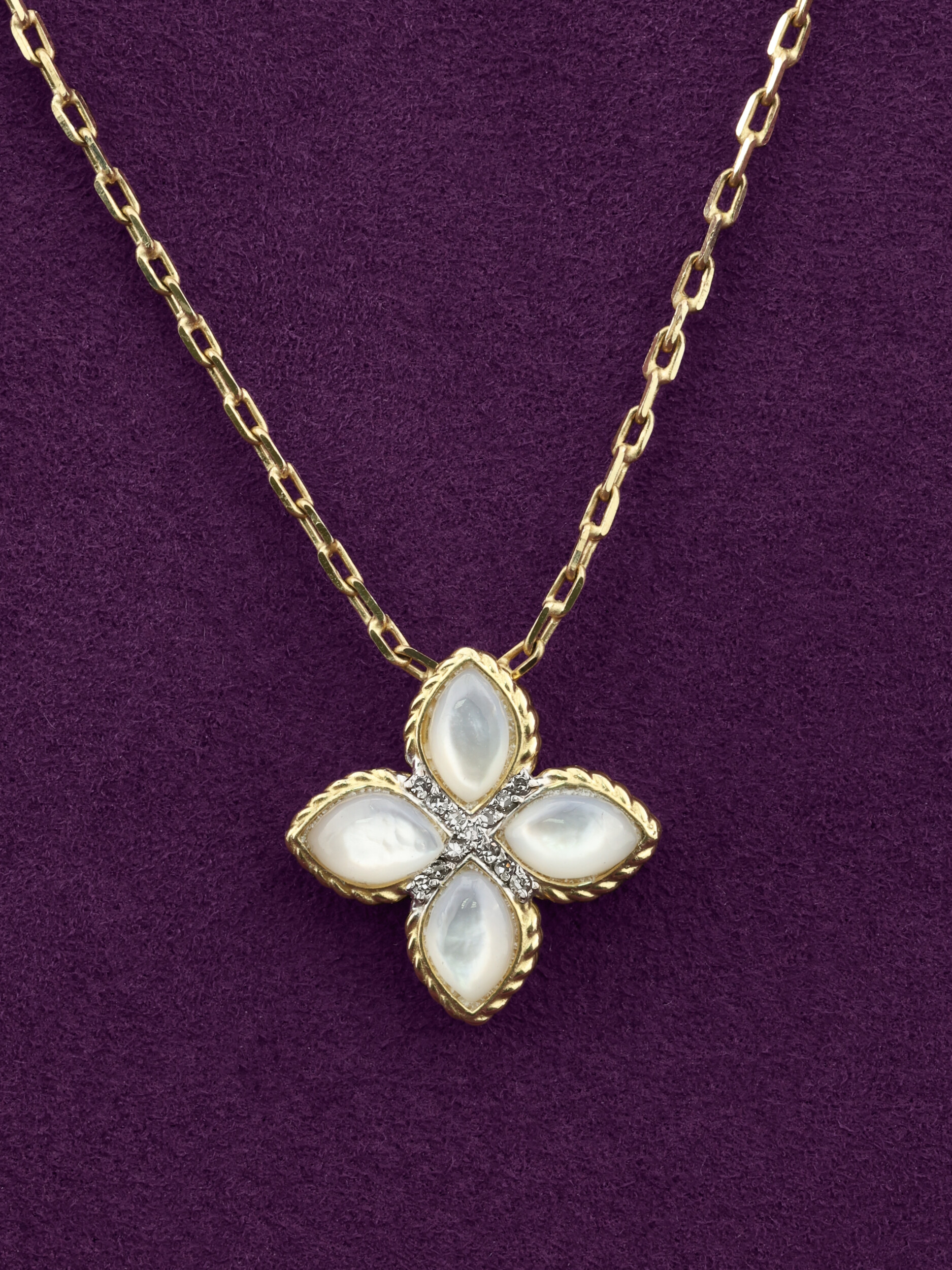 Колье из лимонного золота c бриллиантами и перламутром