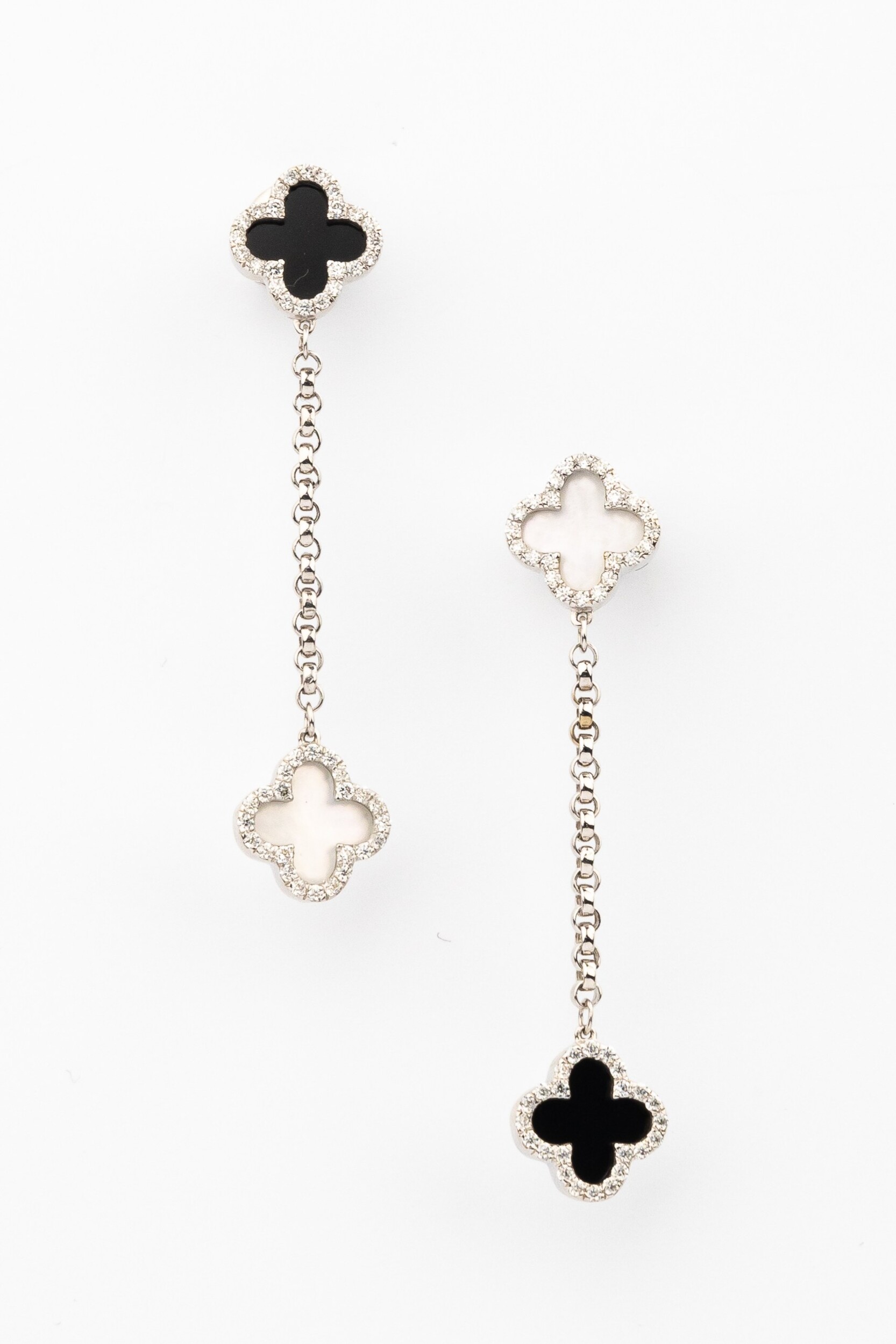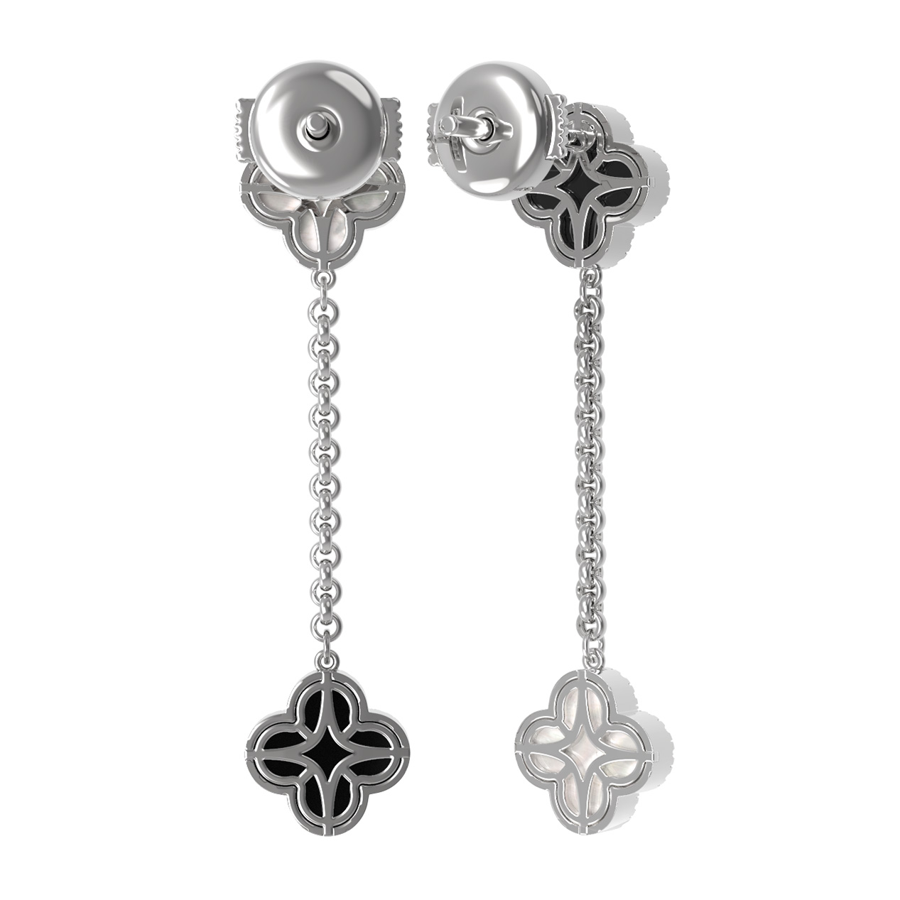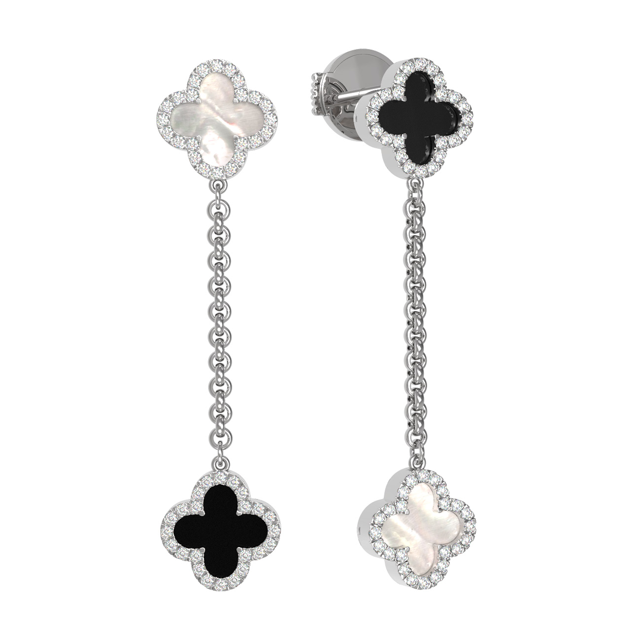 Серьги из белого золота c бриллиантами, ониксом и перламутром