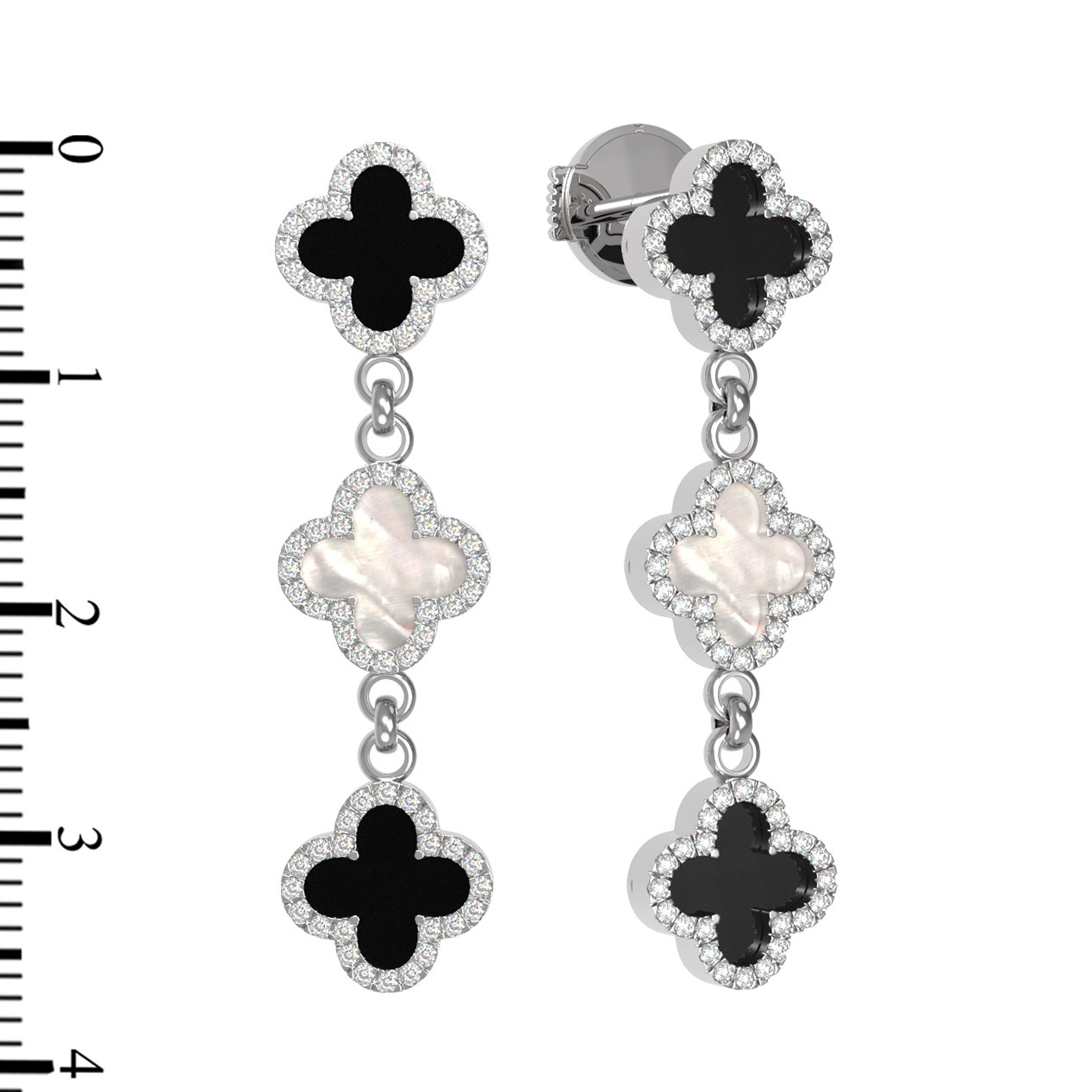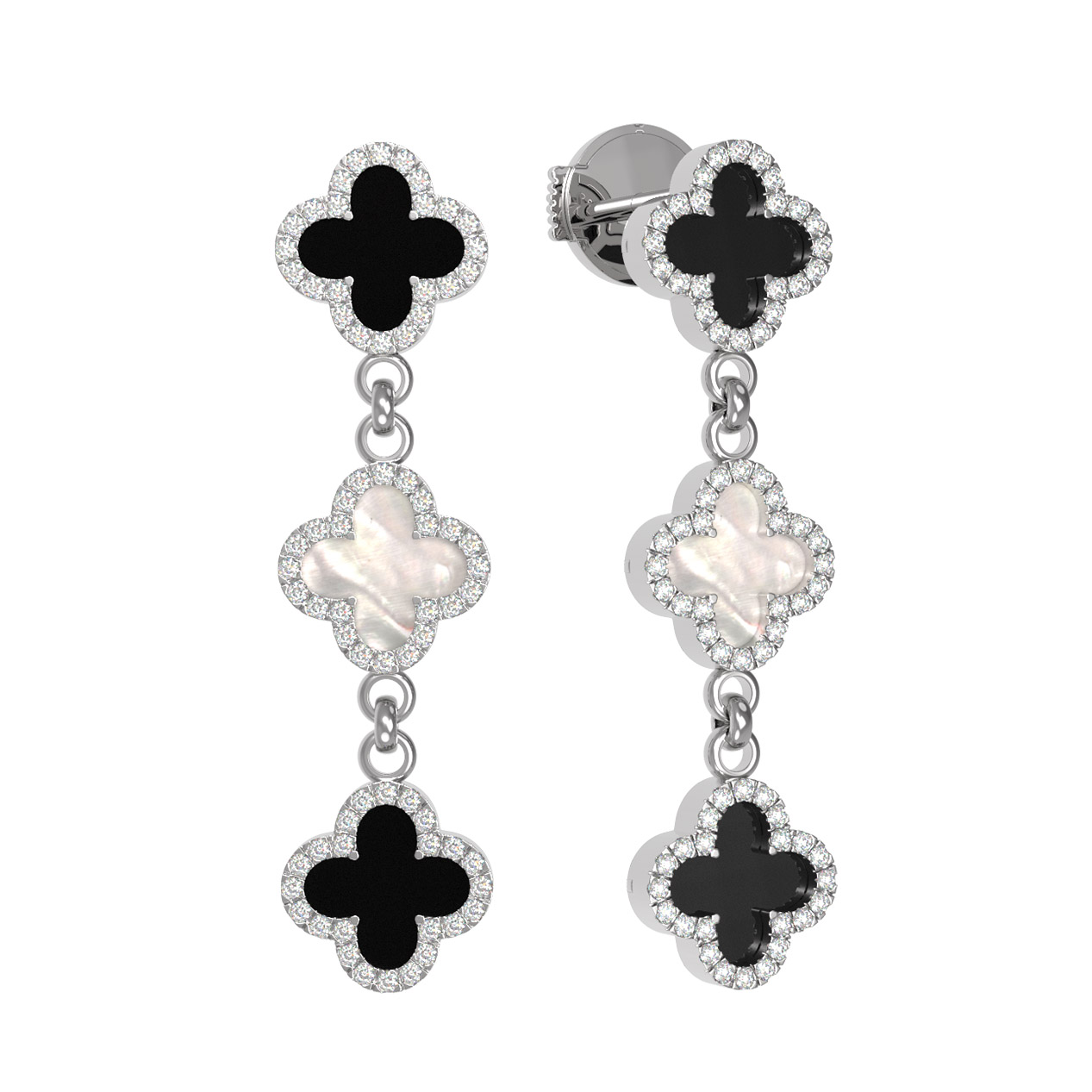 Серьги из белого золота c бриллиантами, ониксом и перламутром