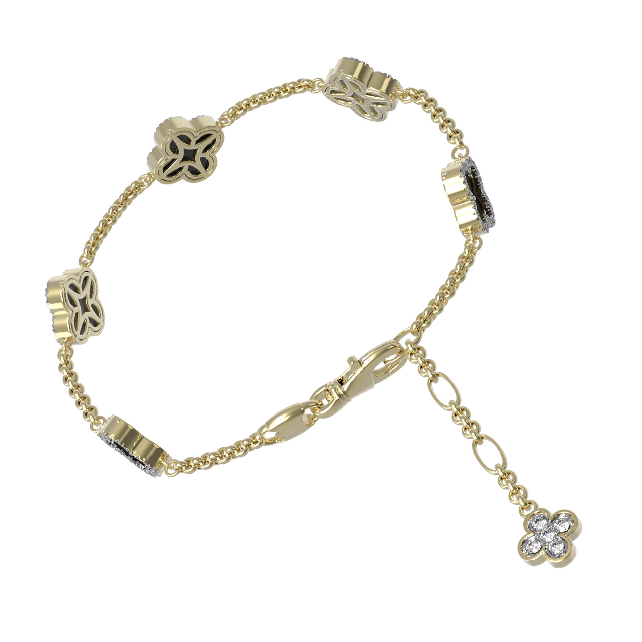 Браслет из лимонного золота c бриллиантами, ониксом и перламутром