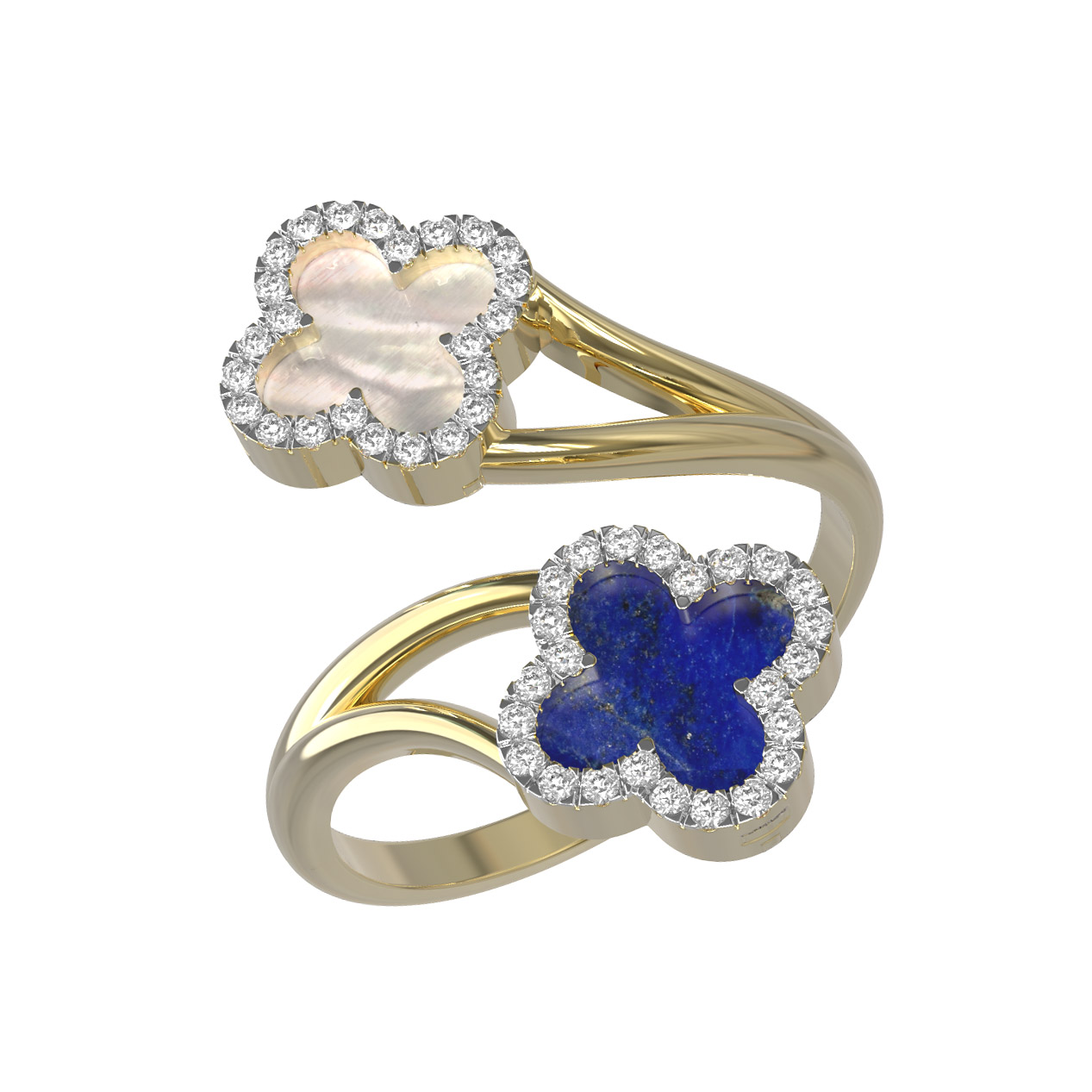 Кольцо из лимонного золота c бриллиантами, лазуритом и перламутром