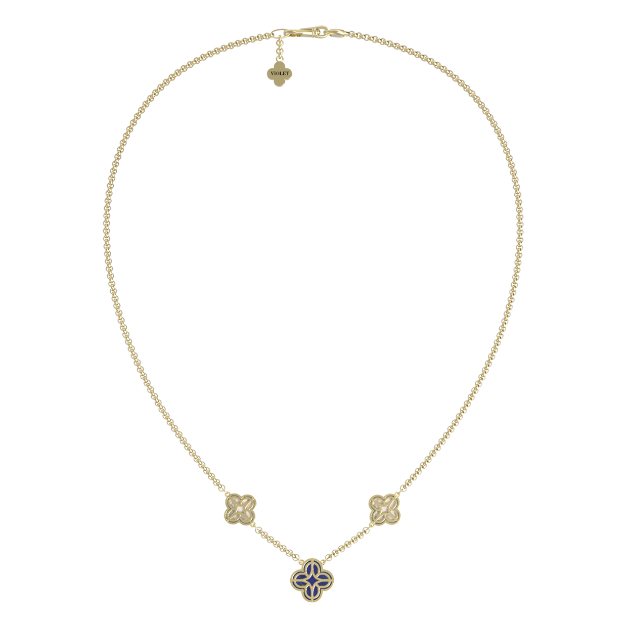 Колье из лимонного золота c бриллиантами, лазуритом и перламутром