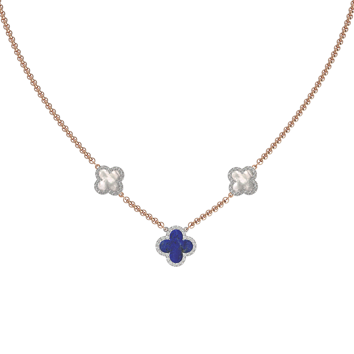 Колье из золота c бриллиантами, лазуритом и перламутром