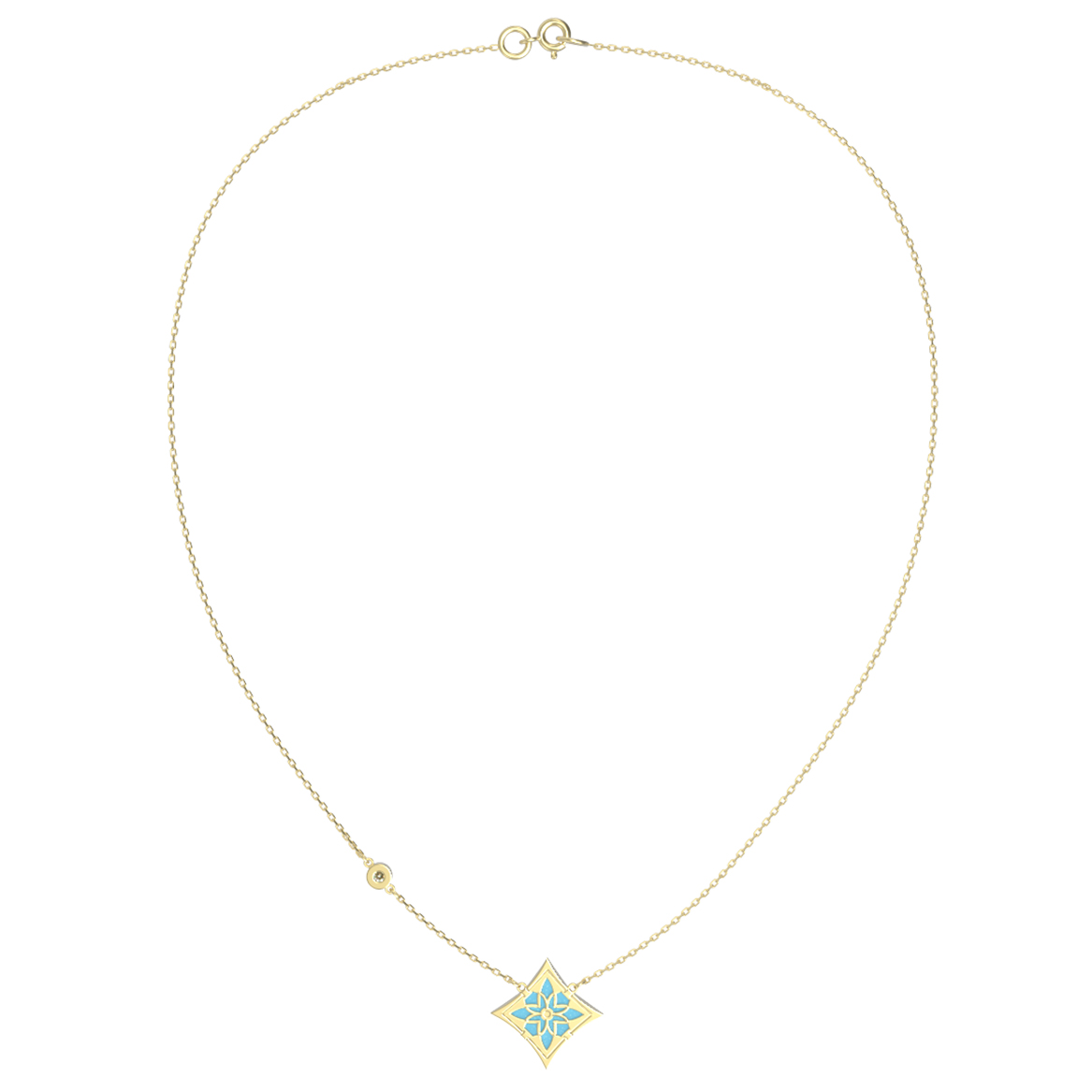 Колье из лимонного золота c бриллиантами и бирюзой