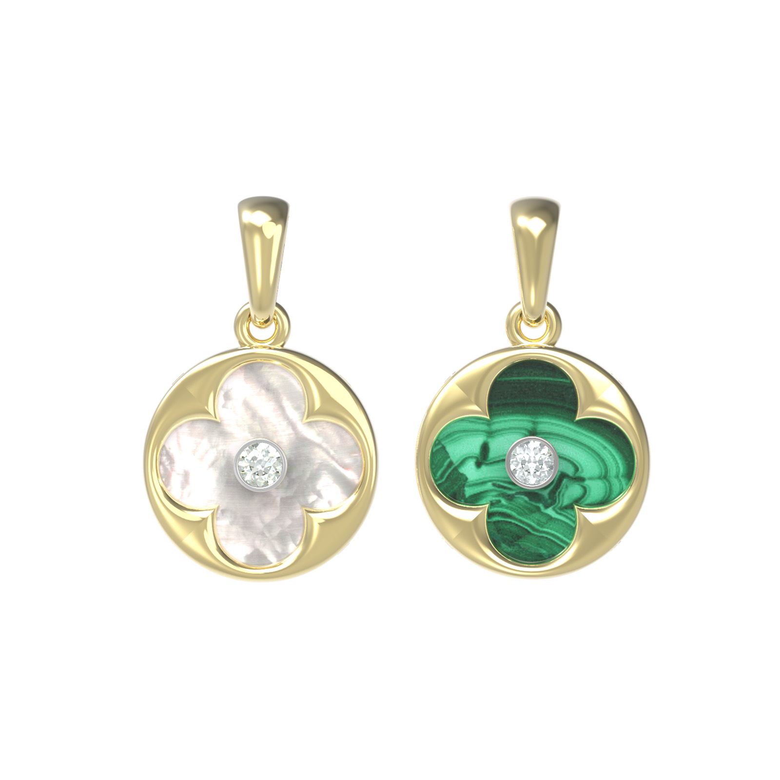 Подвеска из лимонного золота c бриллиантами, малахитом и перламутром