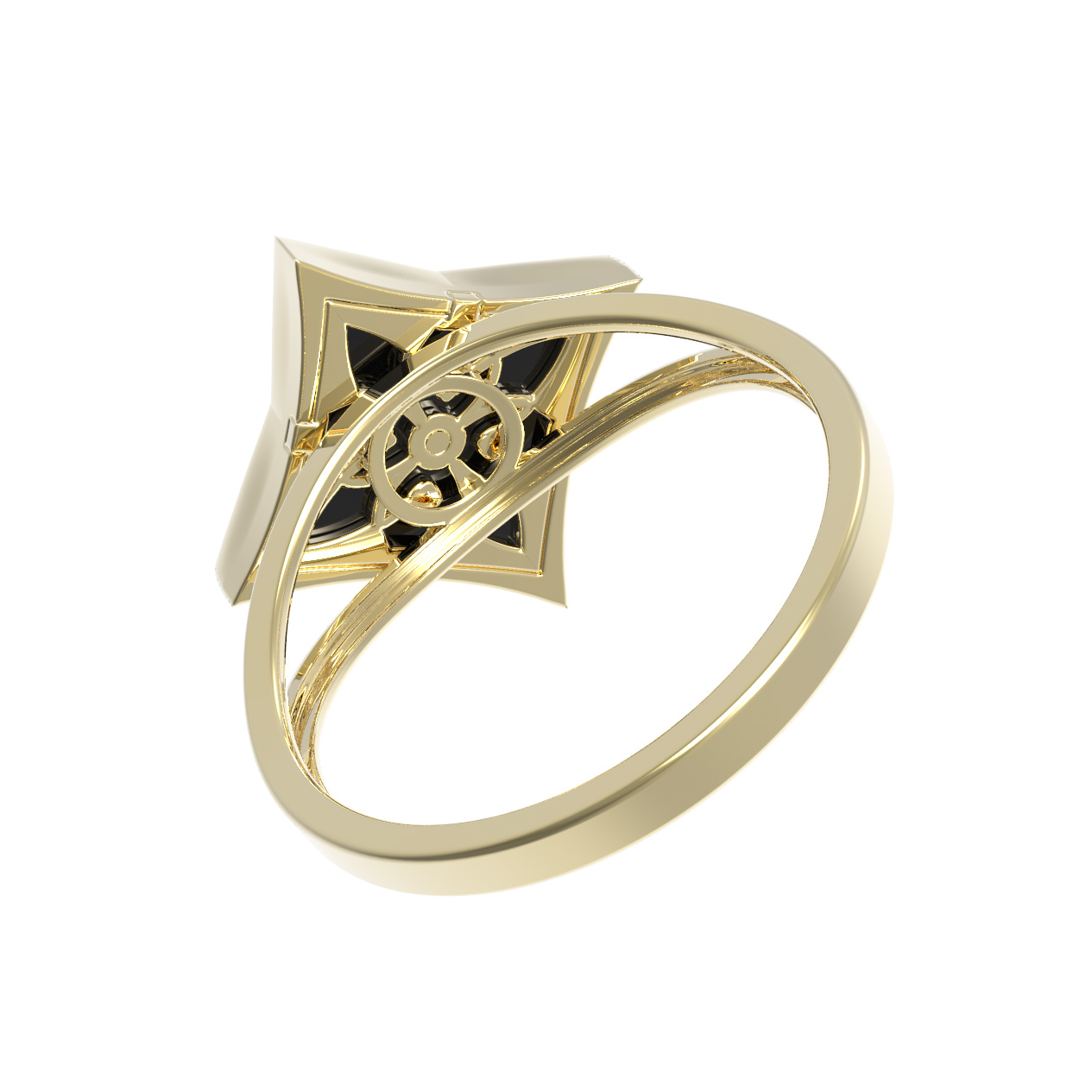 Кольцо из лимонного золота c бриллиантами и ониксом