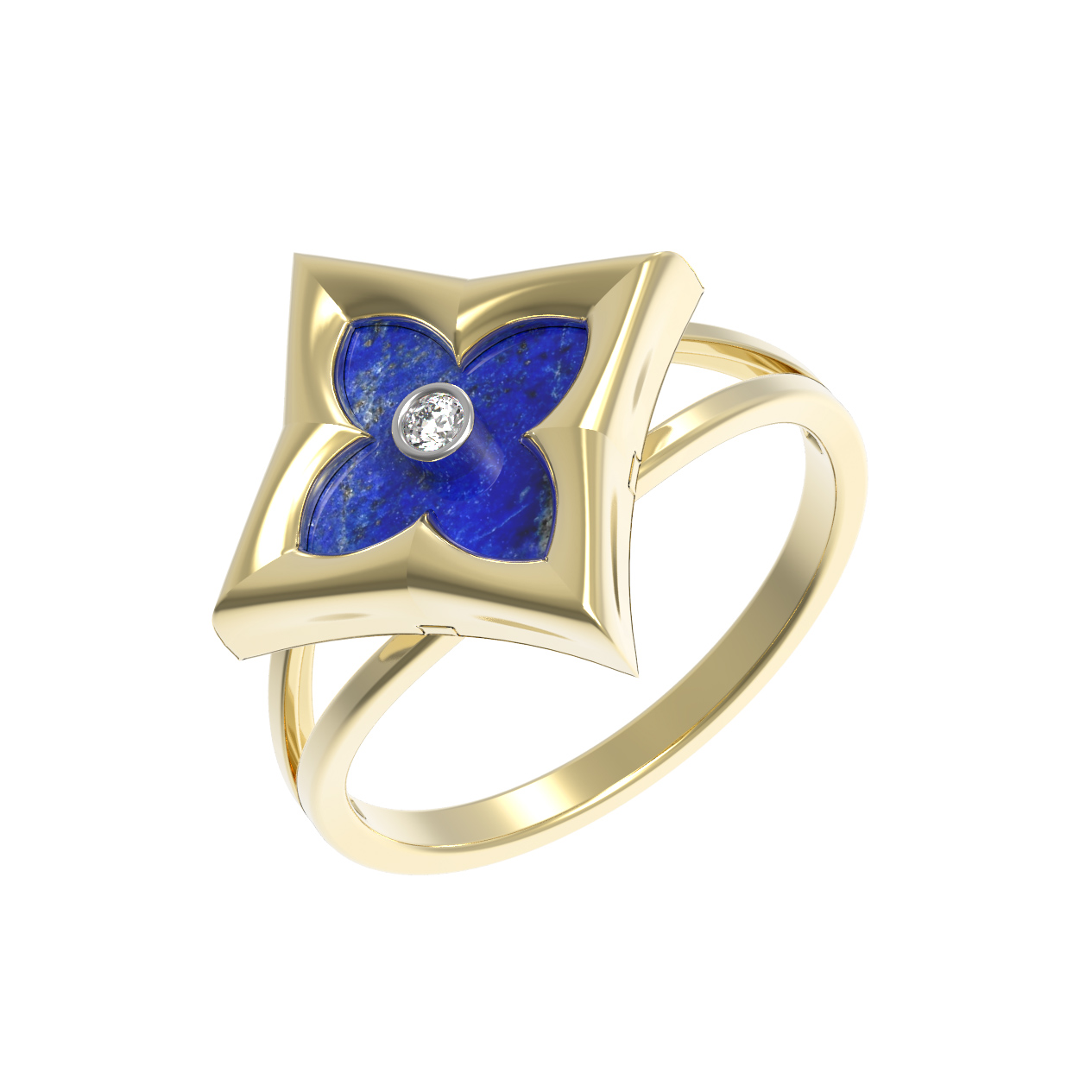 Кольцо из лимонного золота c бриллиантами и лазуритом