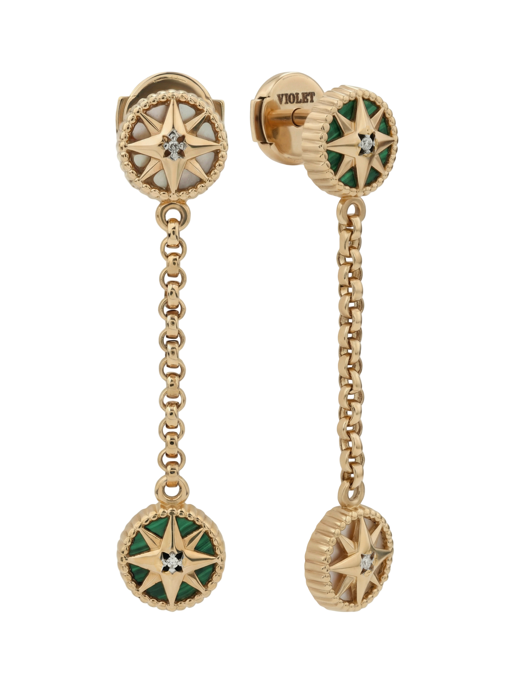 Серьги из золота c бриллиантами, малахитом и перламутром