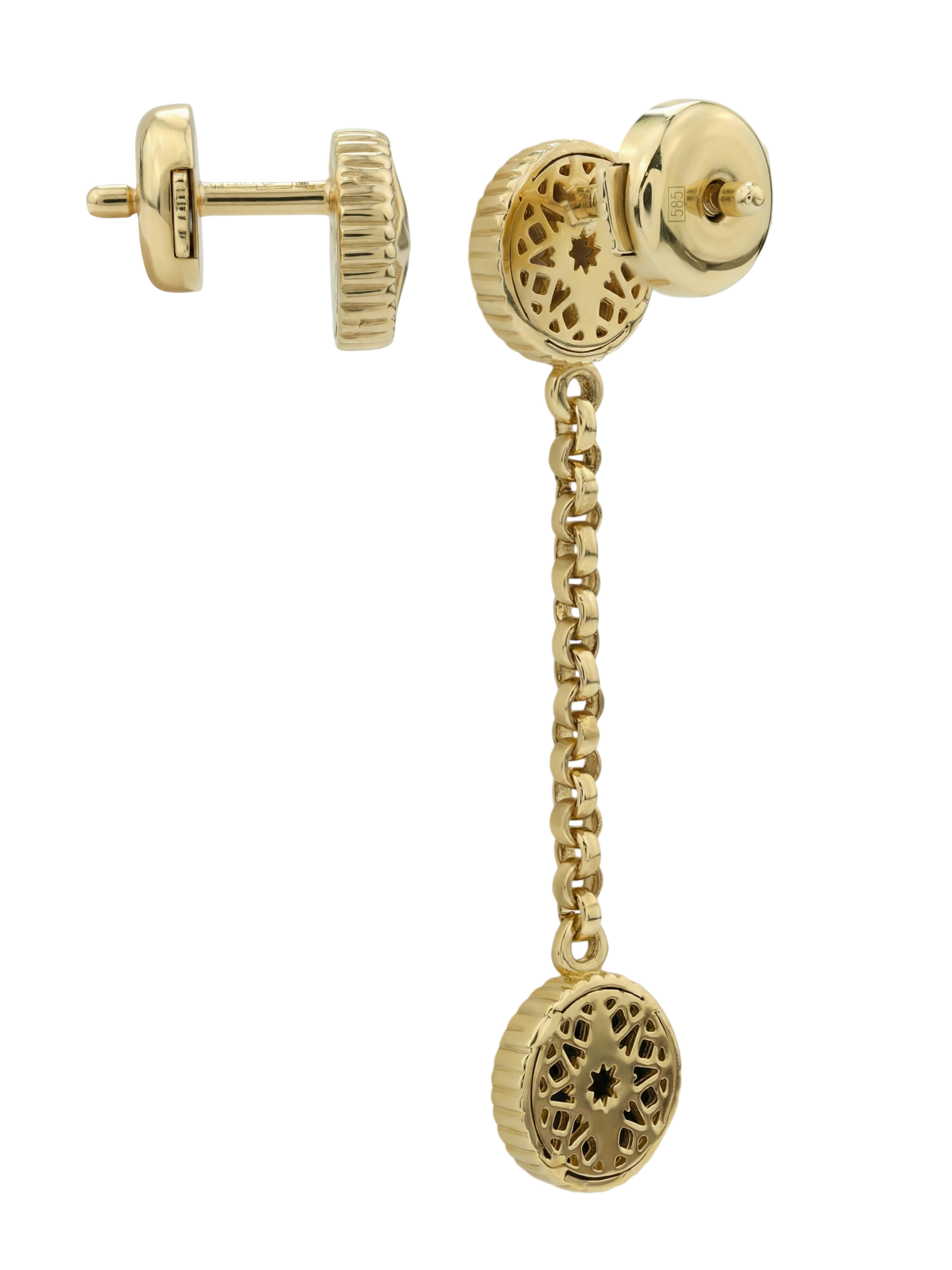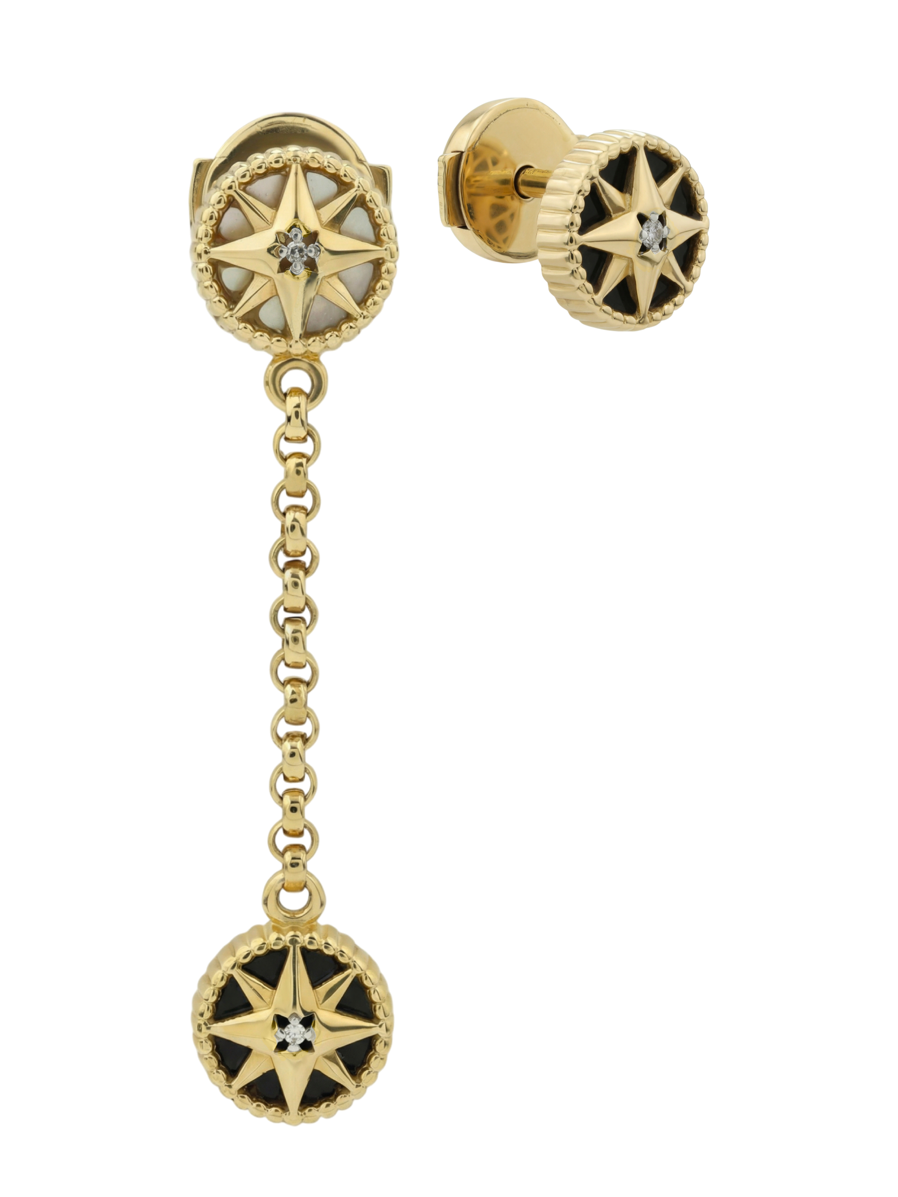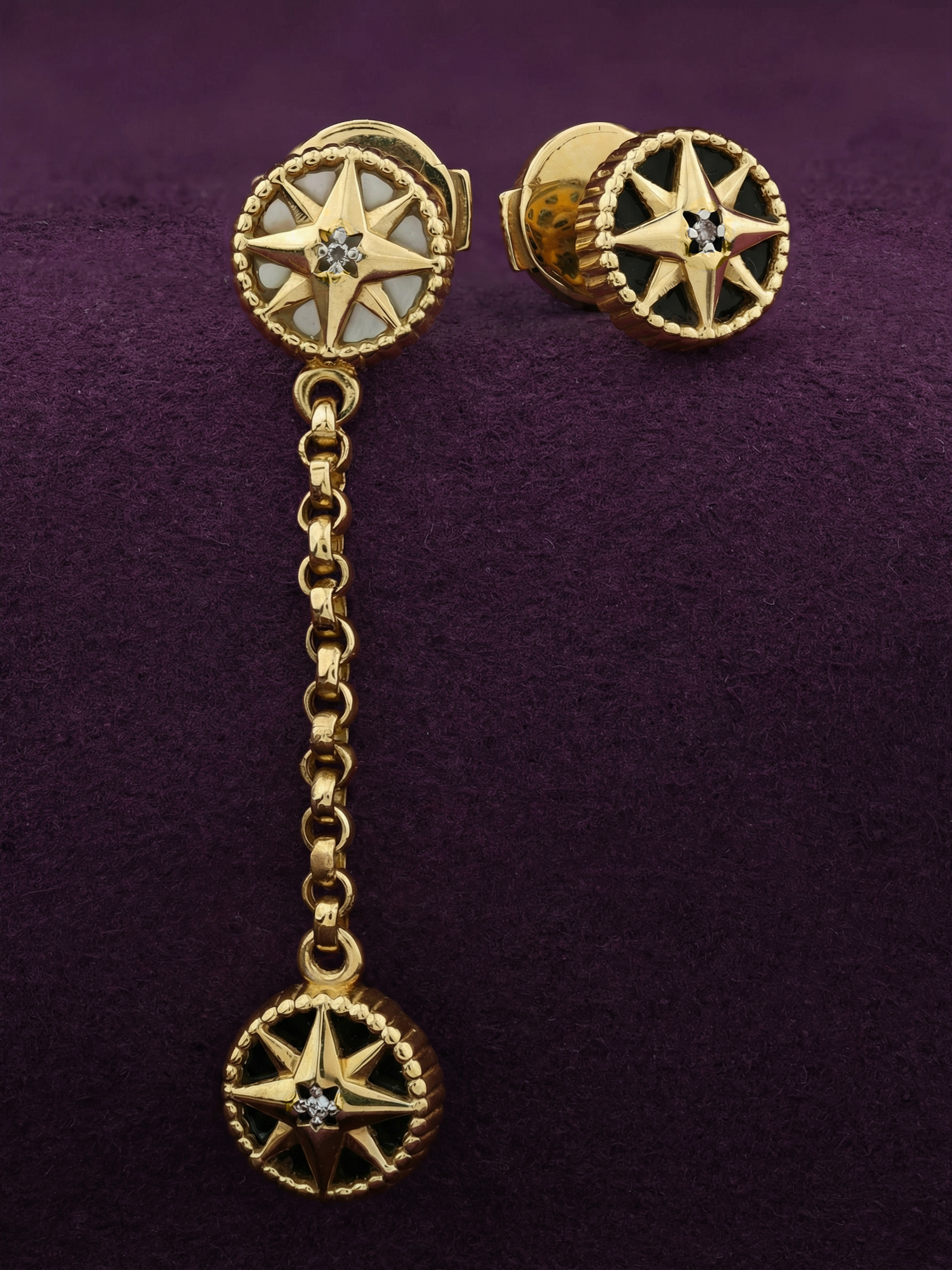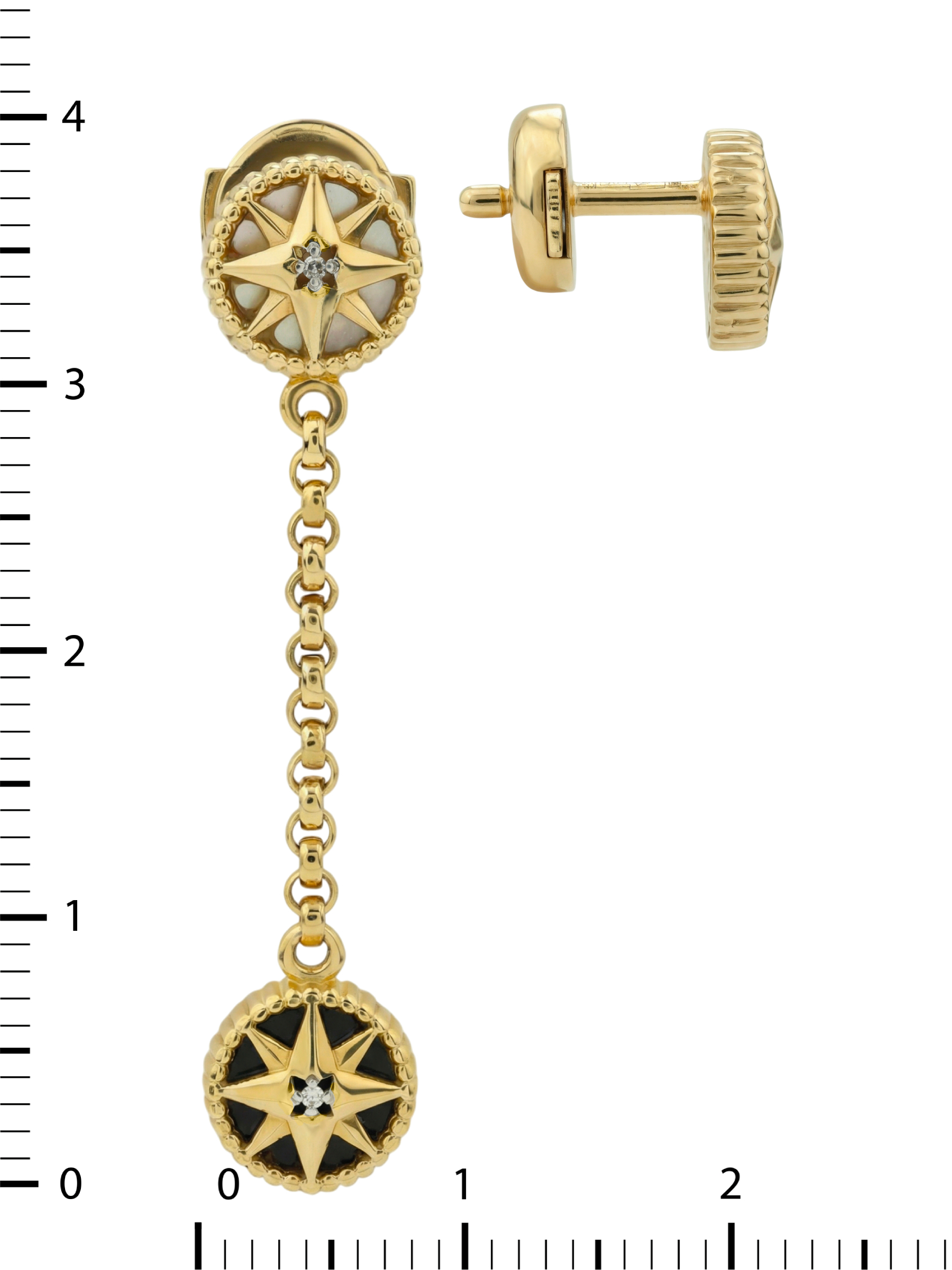 Серьги из лимонного золота c бриллиантами, ониксом и перламутром