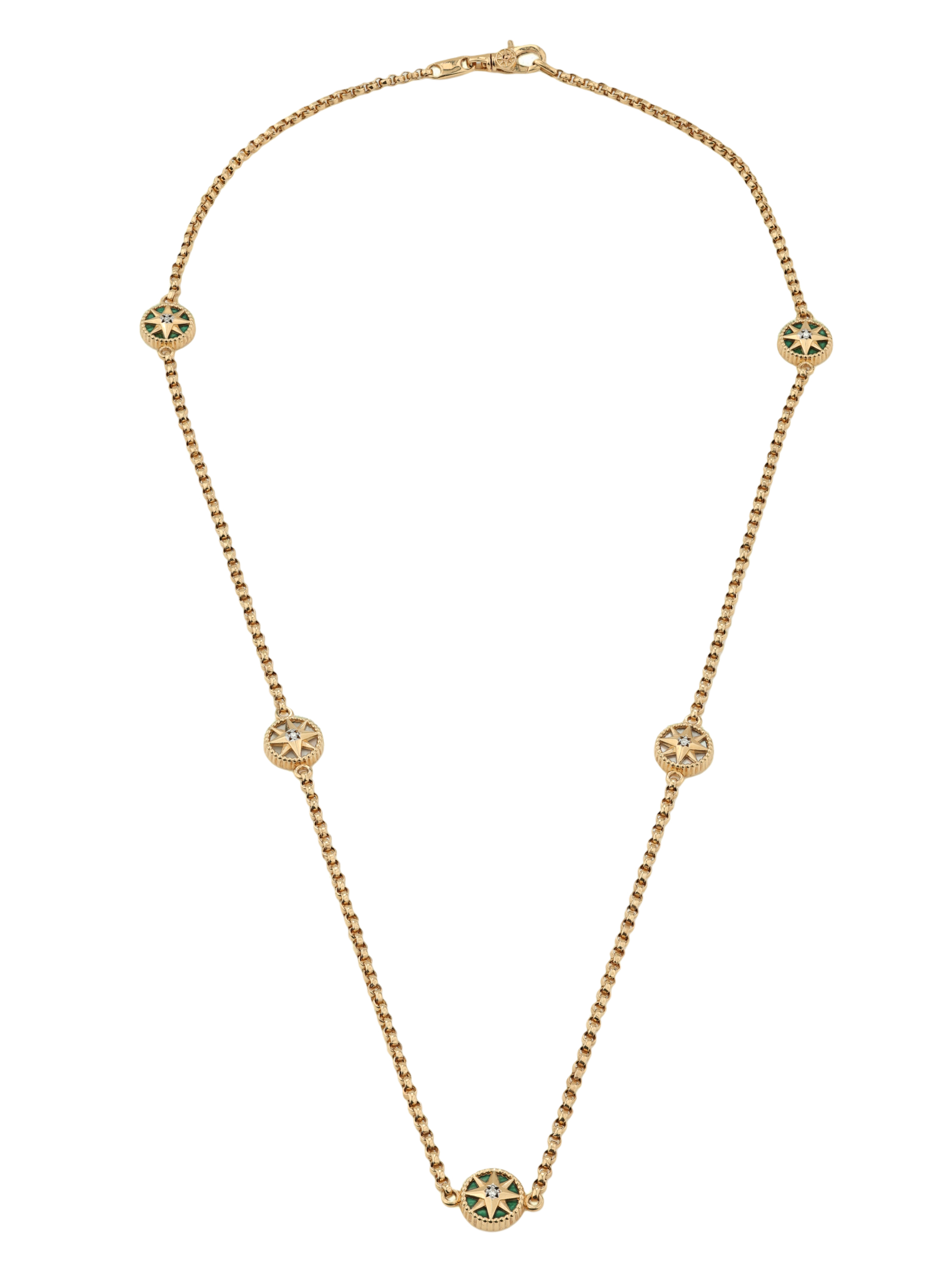 Колье из золота c бриллиантами, малахитом и перламутром