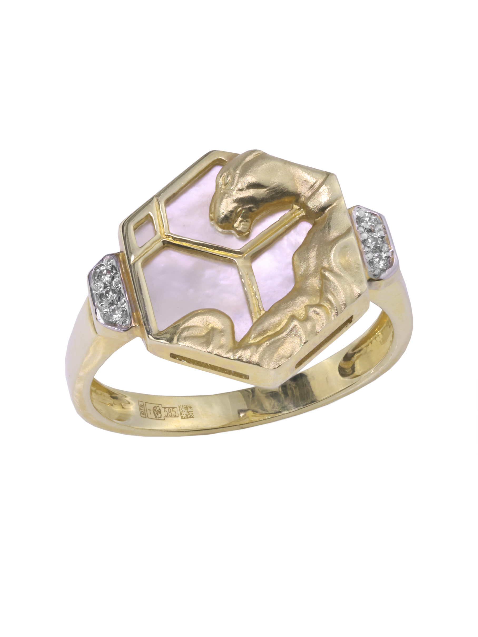 Кольцо из лимонного золота c бриллиантами и перламутром