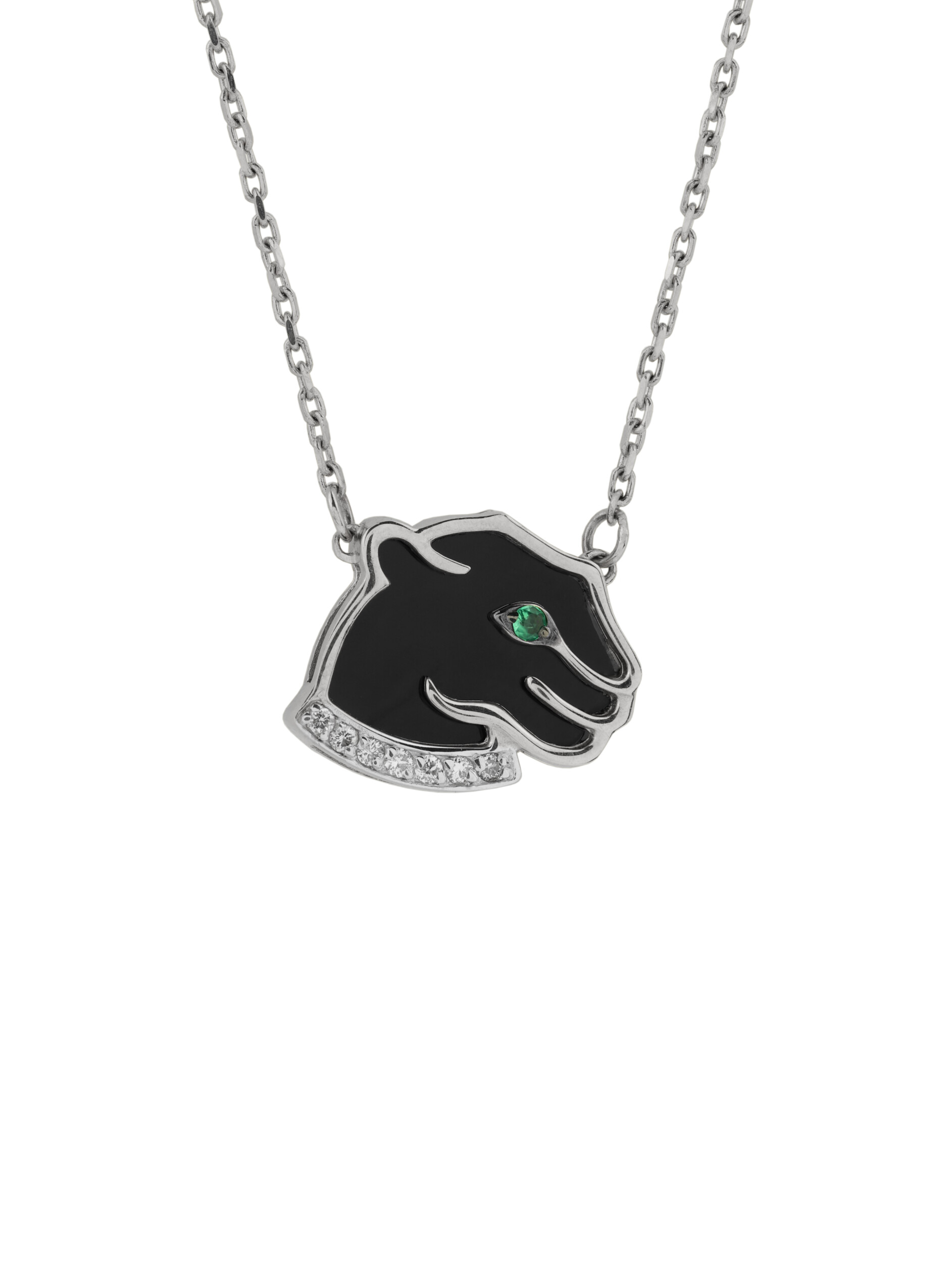 Колье из белого золота c бриллиантами, изумрудом и ониксом