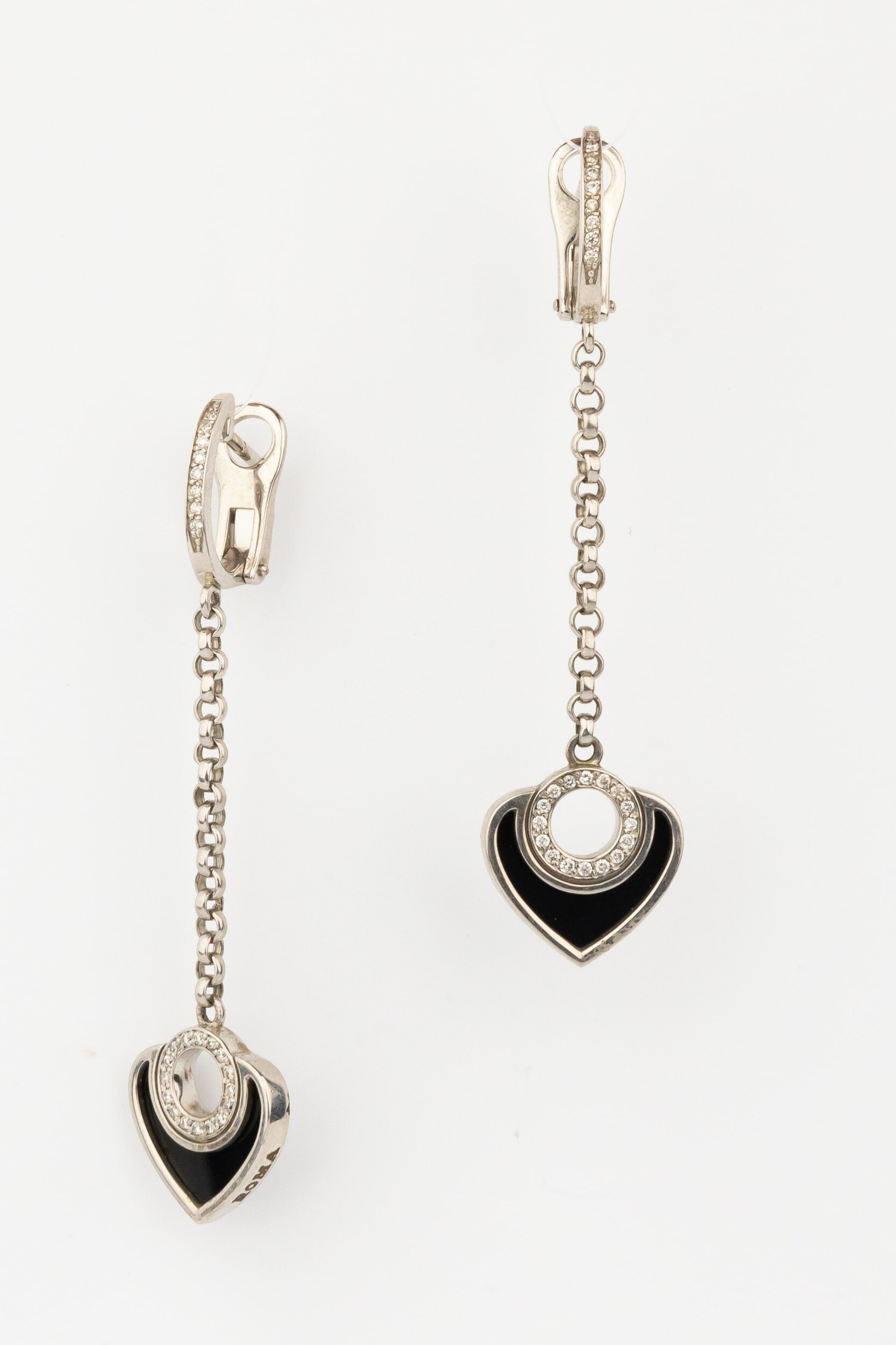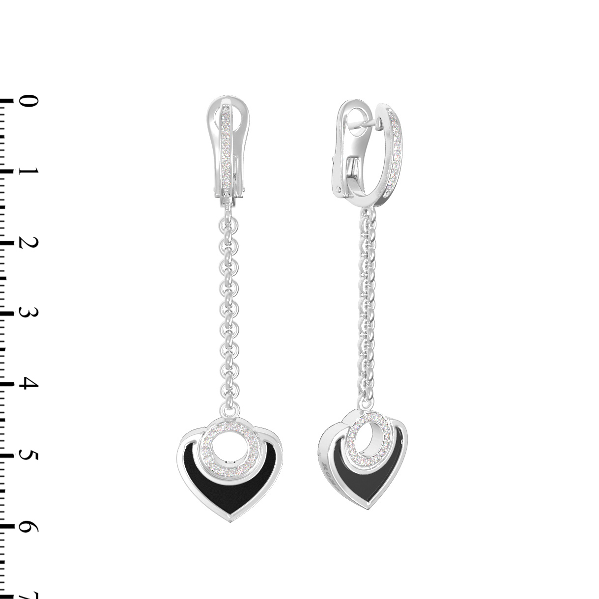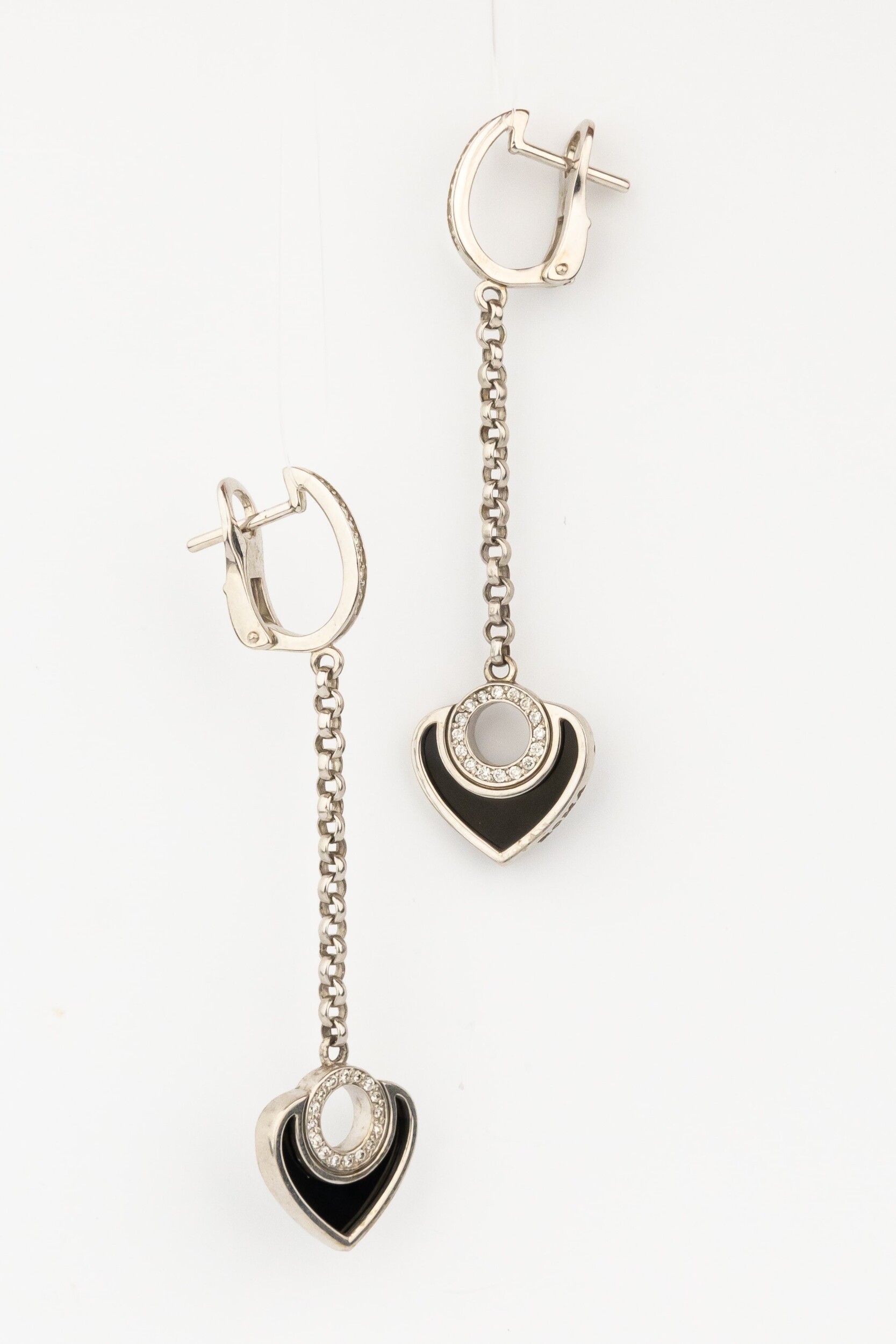 Серьги из белого золота c бриллиантами и ониксом