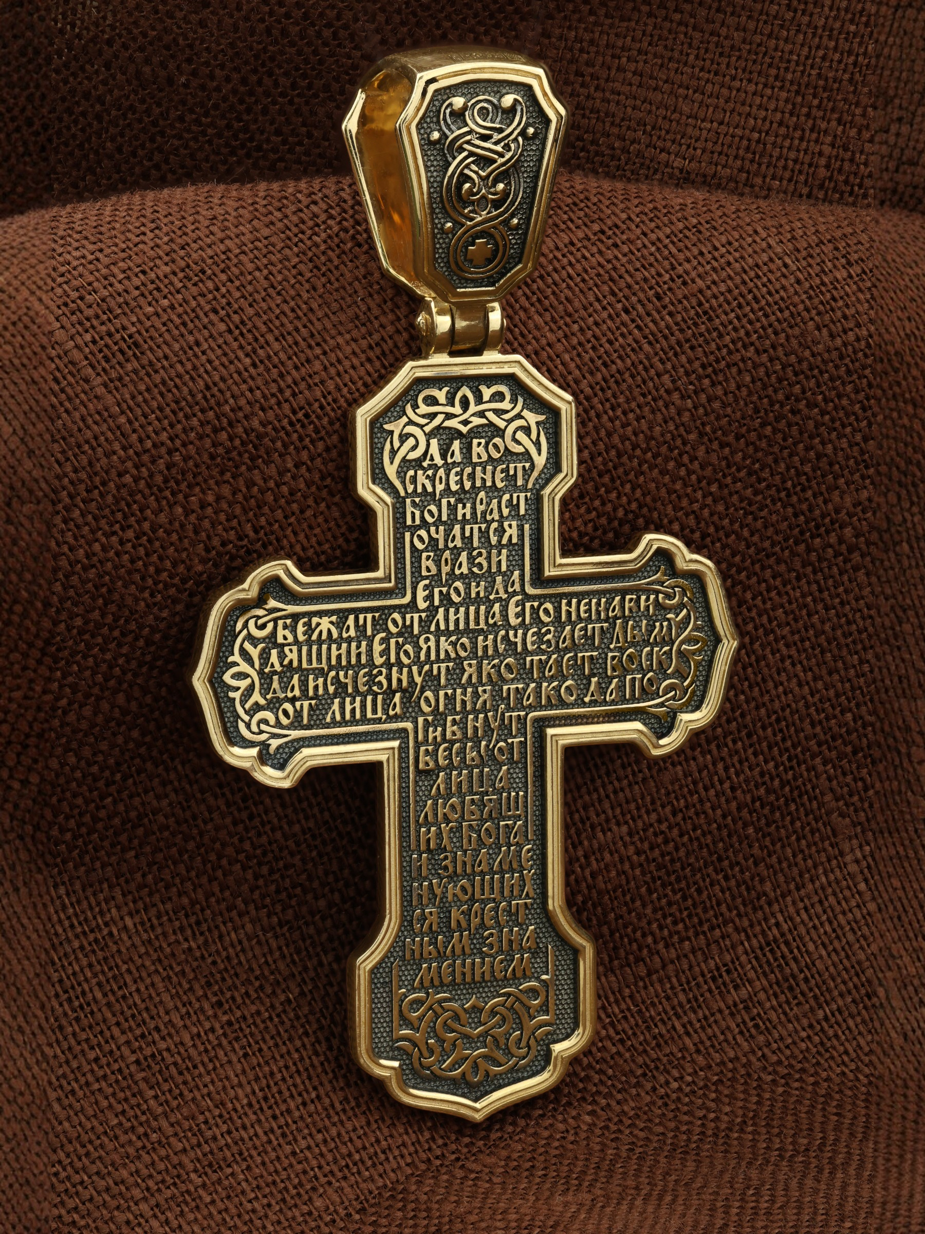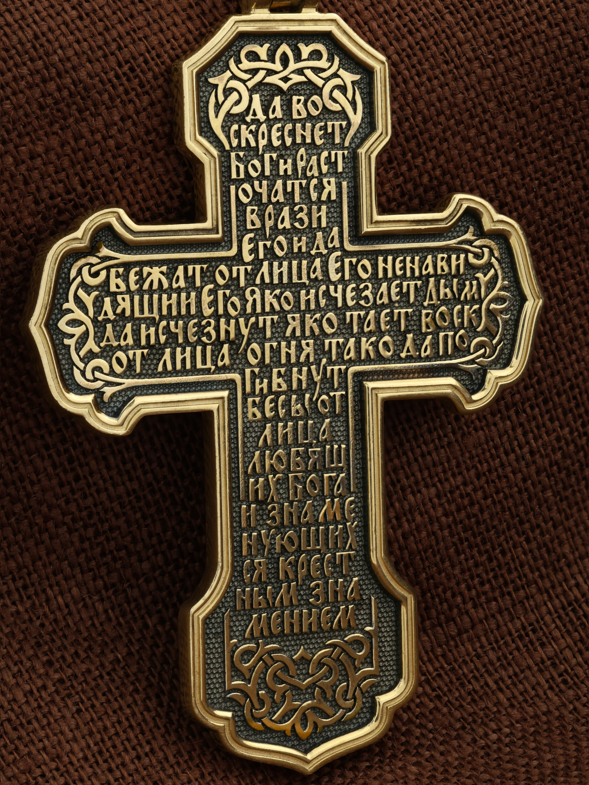 На оборотной стороне креста написана молитва Честному Кресту Господню: «Да воскреснет Бог, и расточатся врази Его, и да бежат от лица Его ненавидящии Его. Яко исчезает дым, да исчезнут; яко тает воск от лица огня, тако да погибнут беси от лица любящих Бога и знаменующихся крестным знамением…».