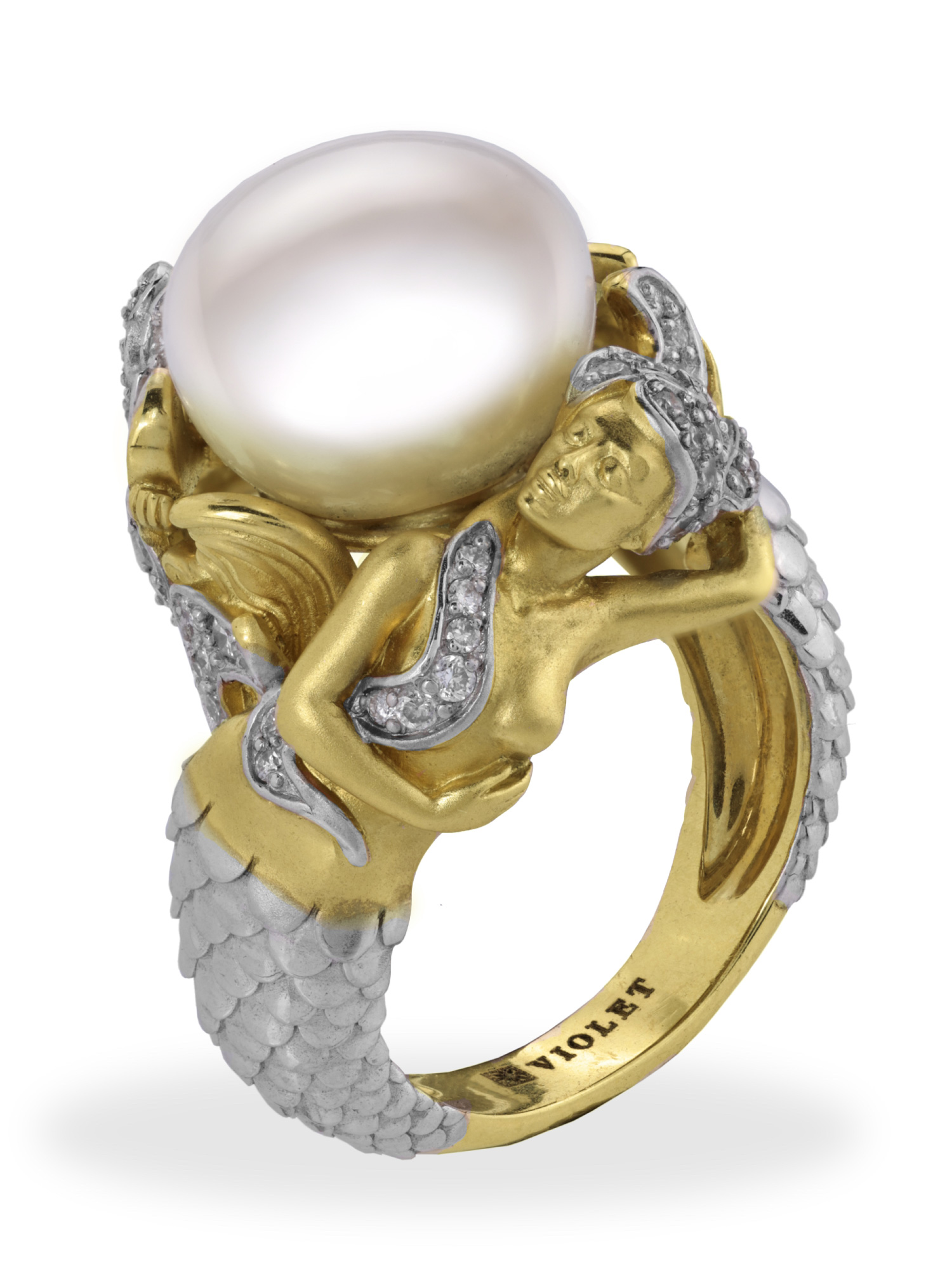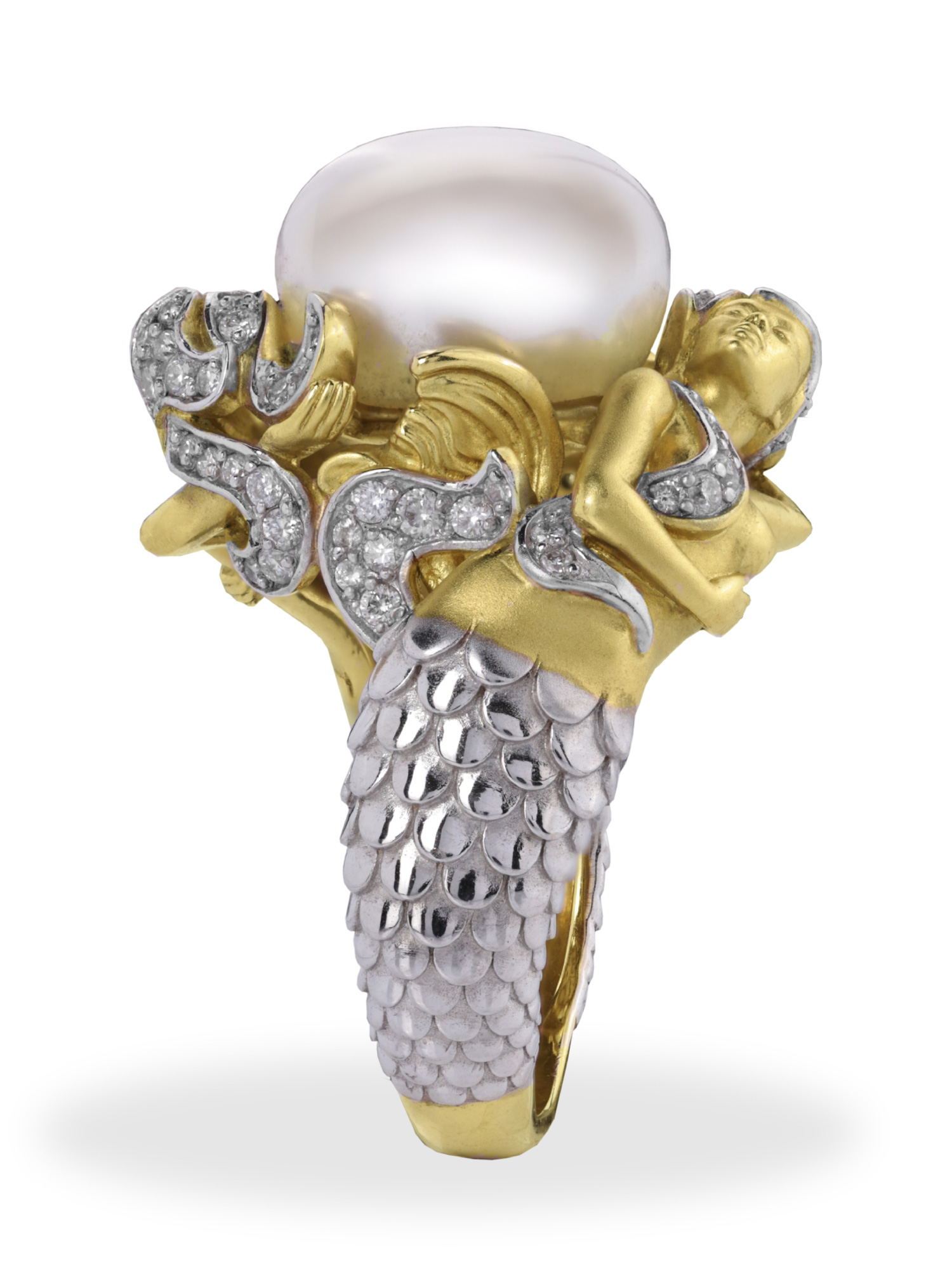 Кольцо из лимонного золота c бриллиантами и жемчугом