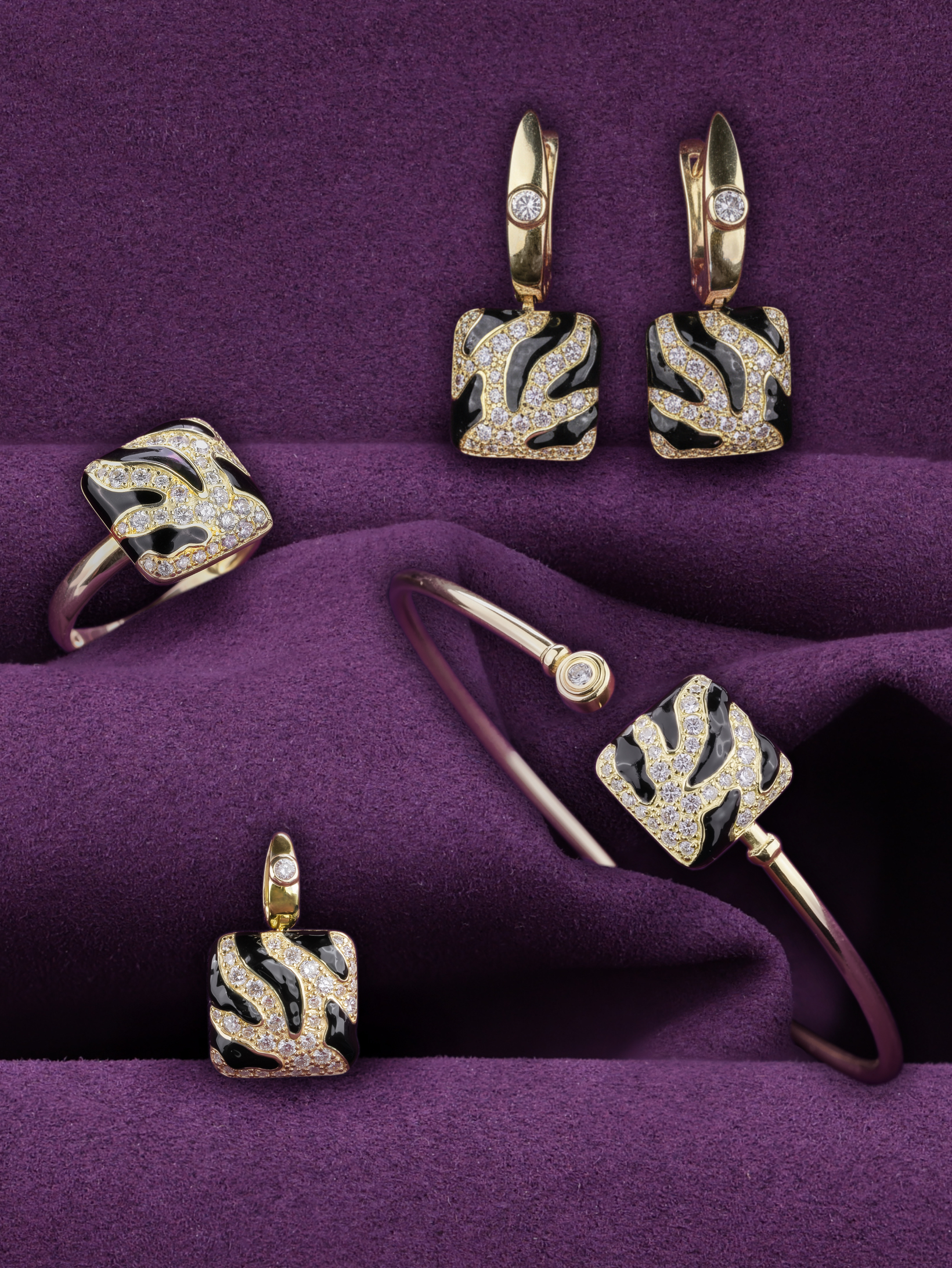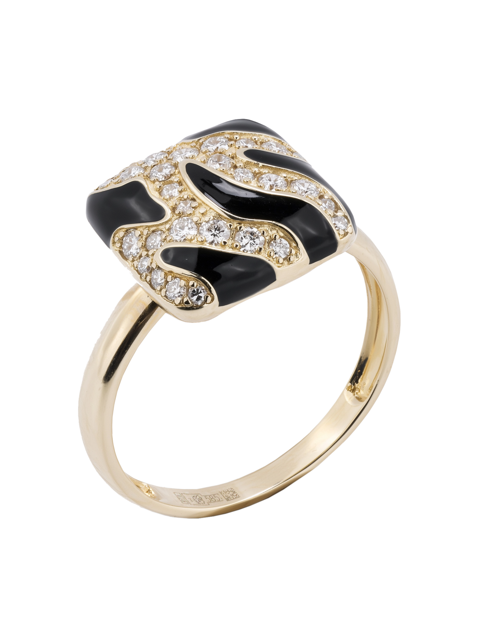 Кольцо из лимонного золота c эмаль и бриллиантами