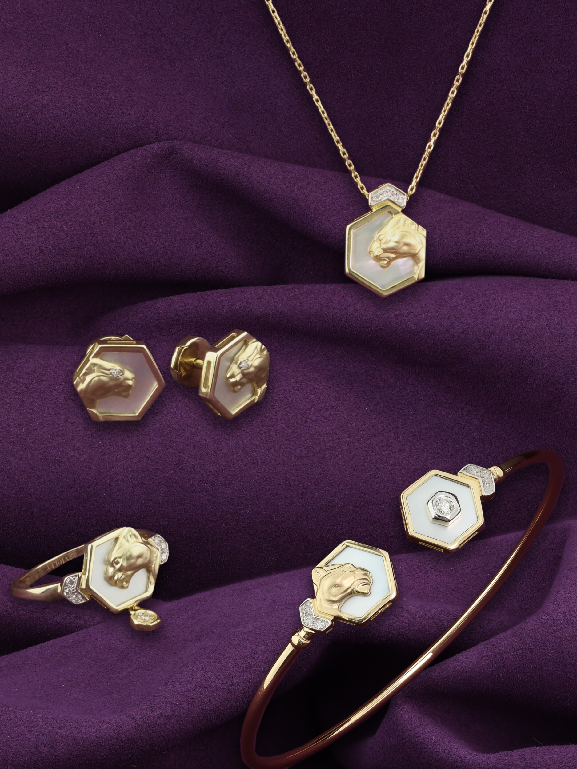 Браслет из лимонного золота c бриллиантами и перламутром