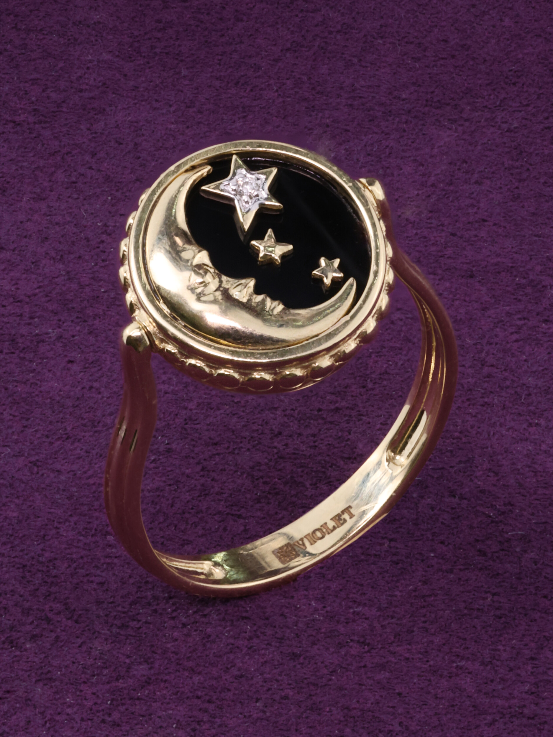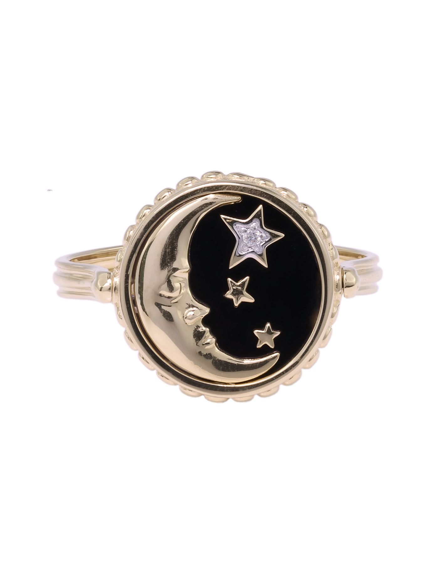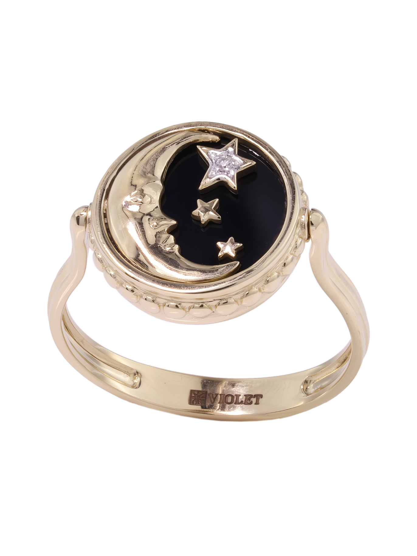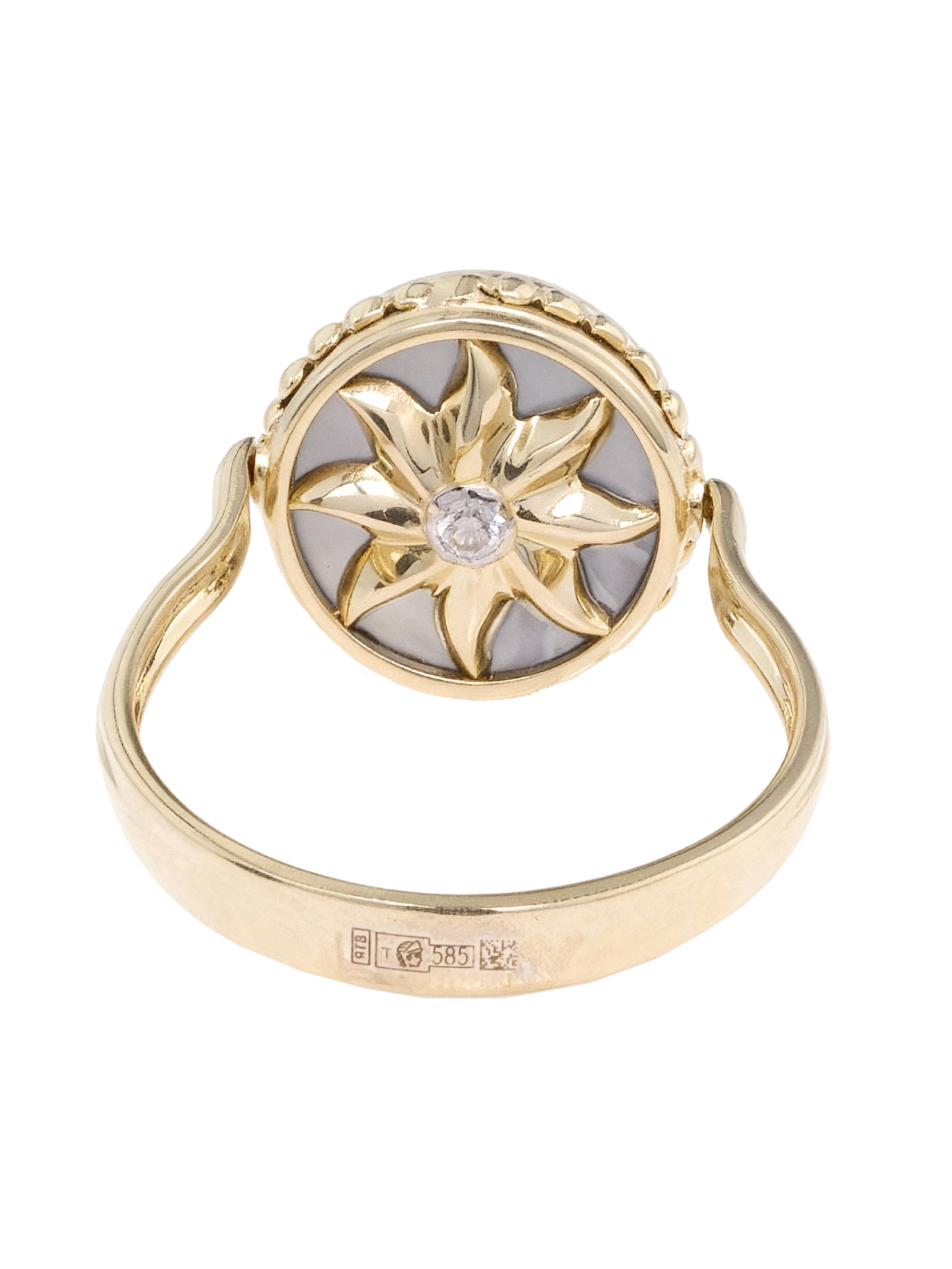 Кольцо из лимонного золота c бриллиантами, ониксом и перламутром