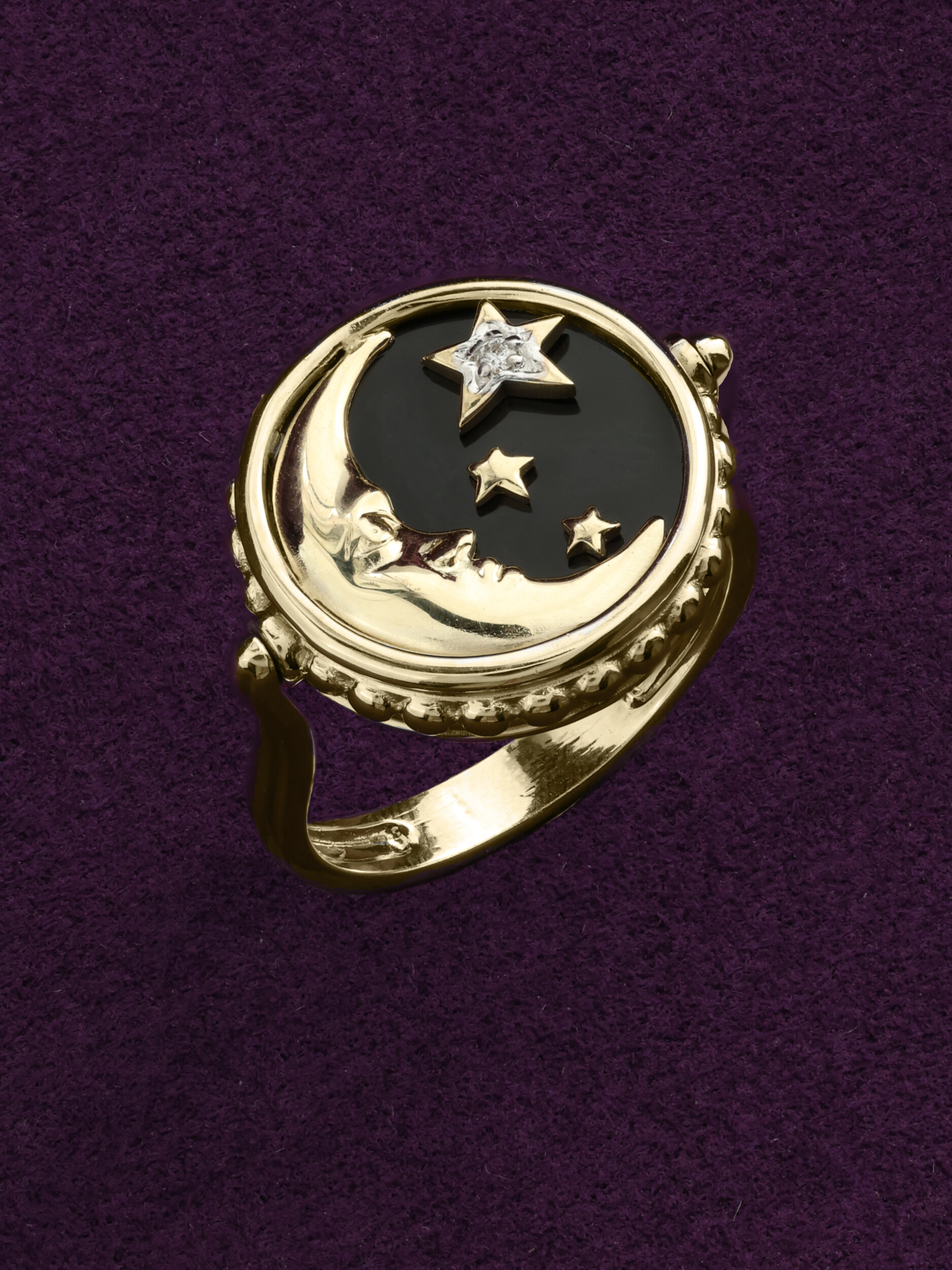 Кольцо из лимонного золота c бриллиантами, ониксом и перламутром