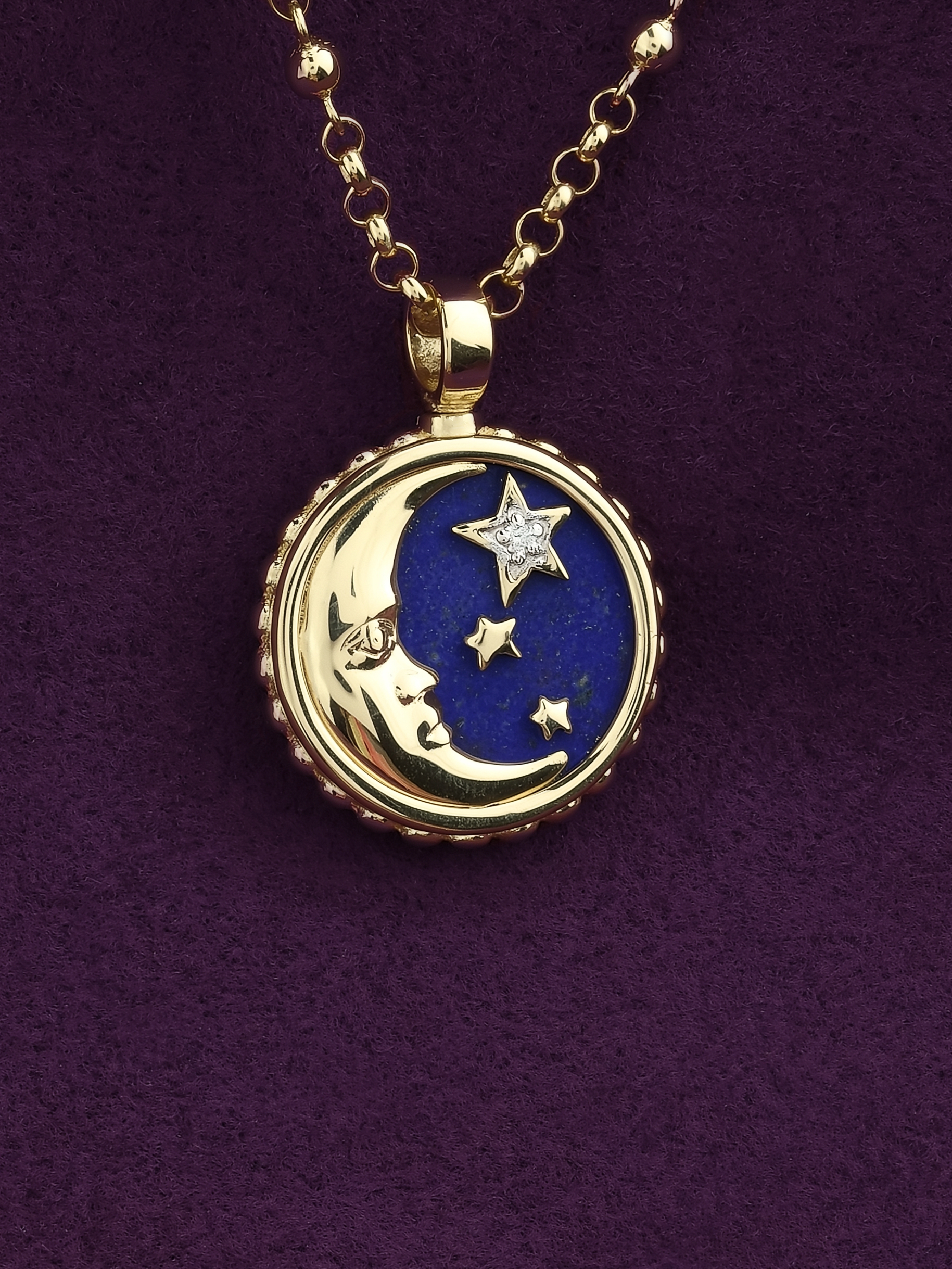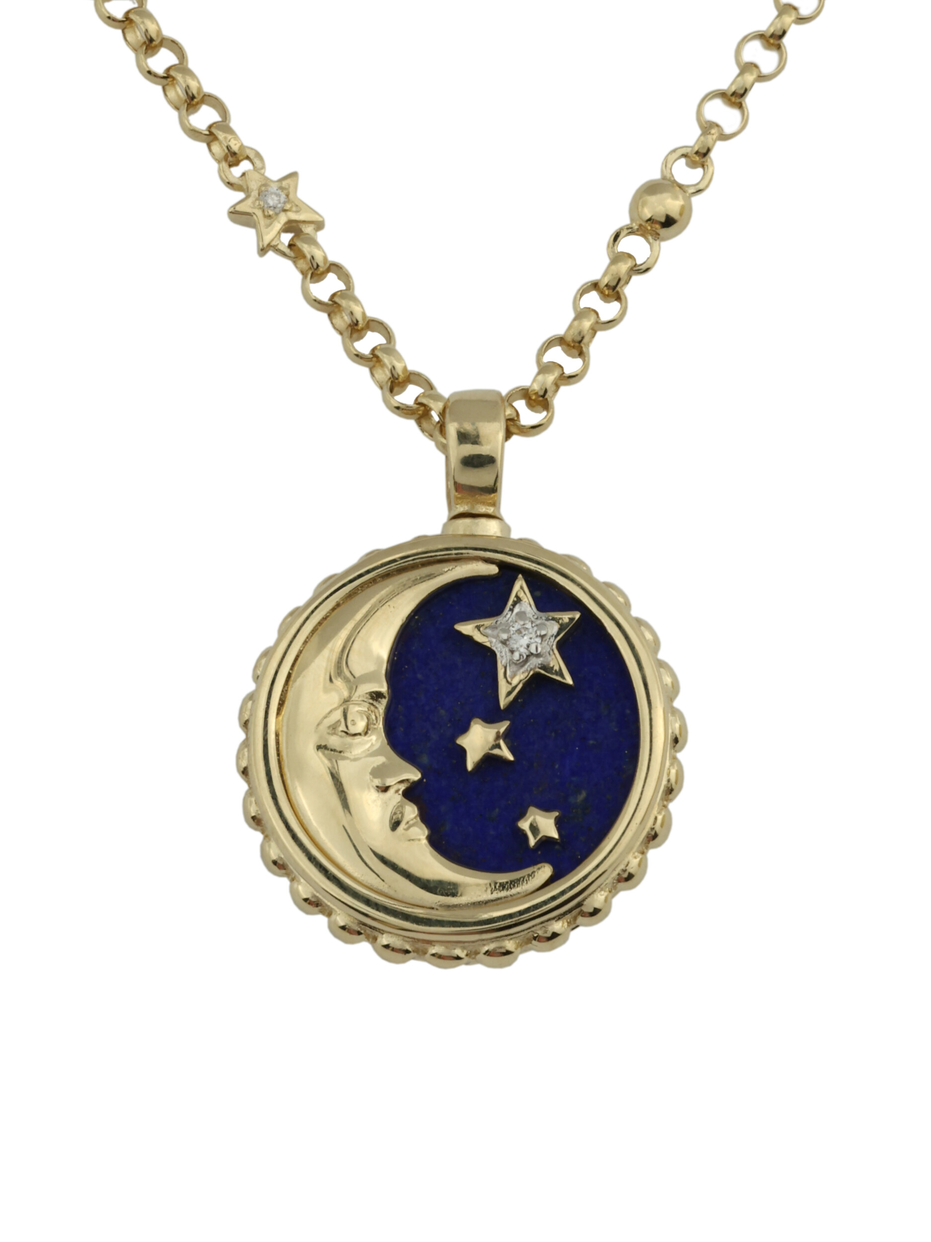 Колье из лимонного золота c бриллиантами, лазуритом и перламутром