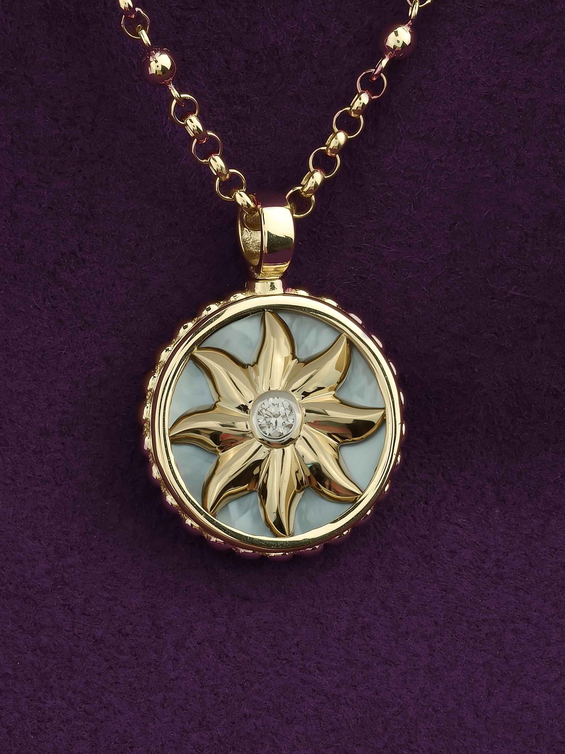 Колье из лимонного золота c бриллиантами, лазуритом и перламутром