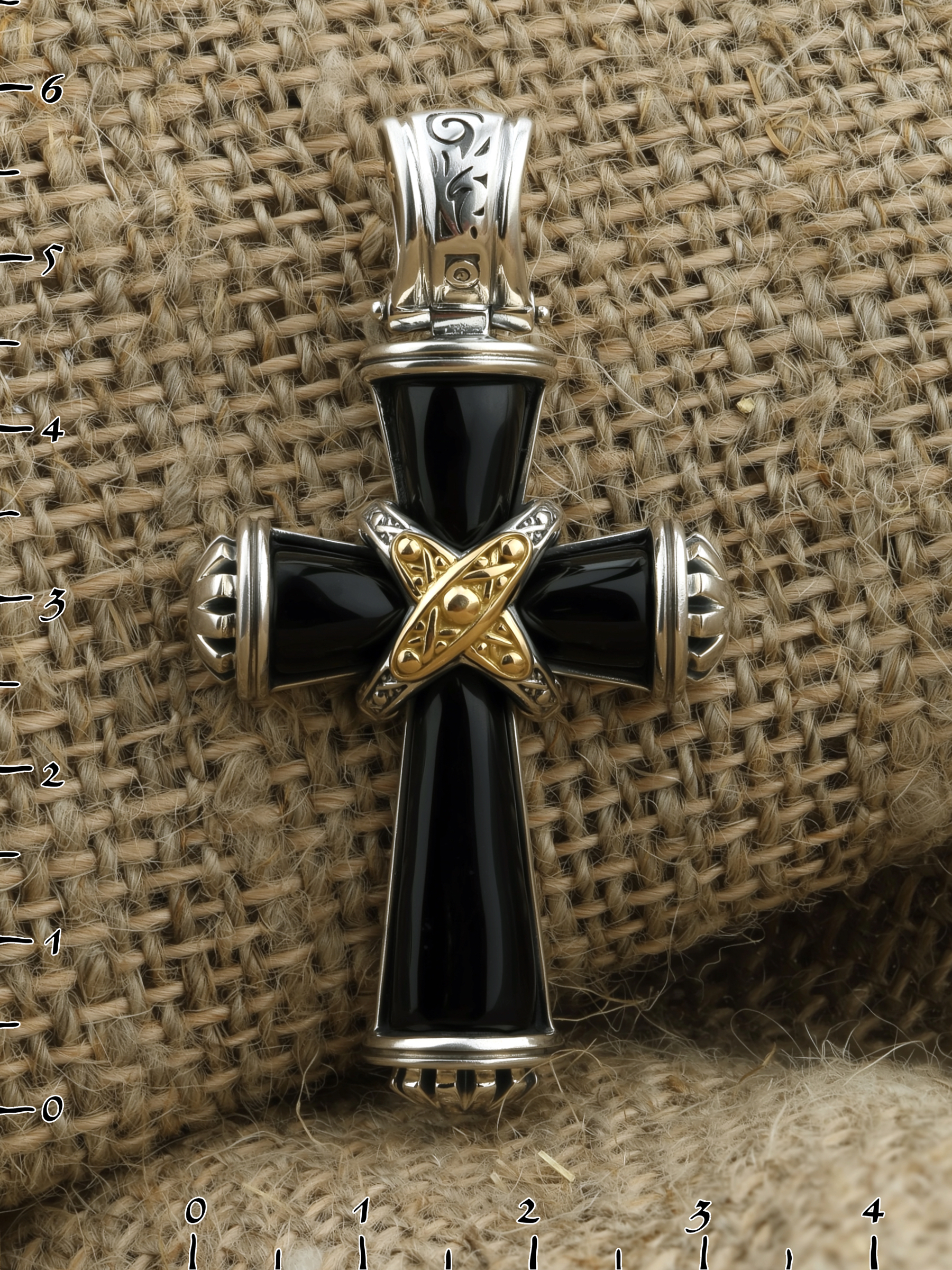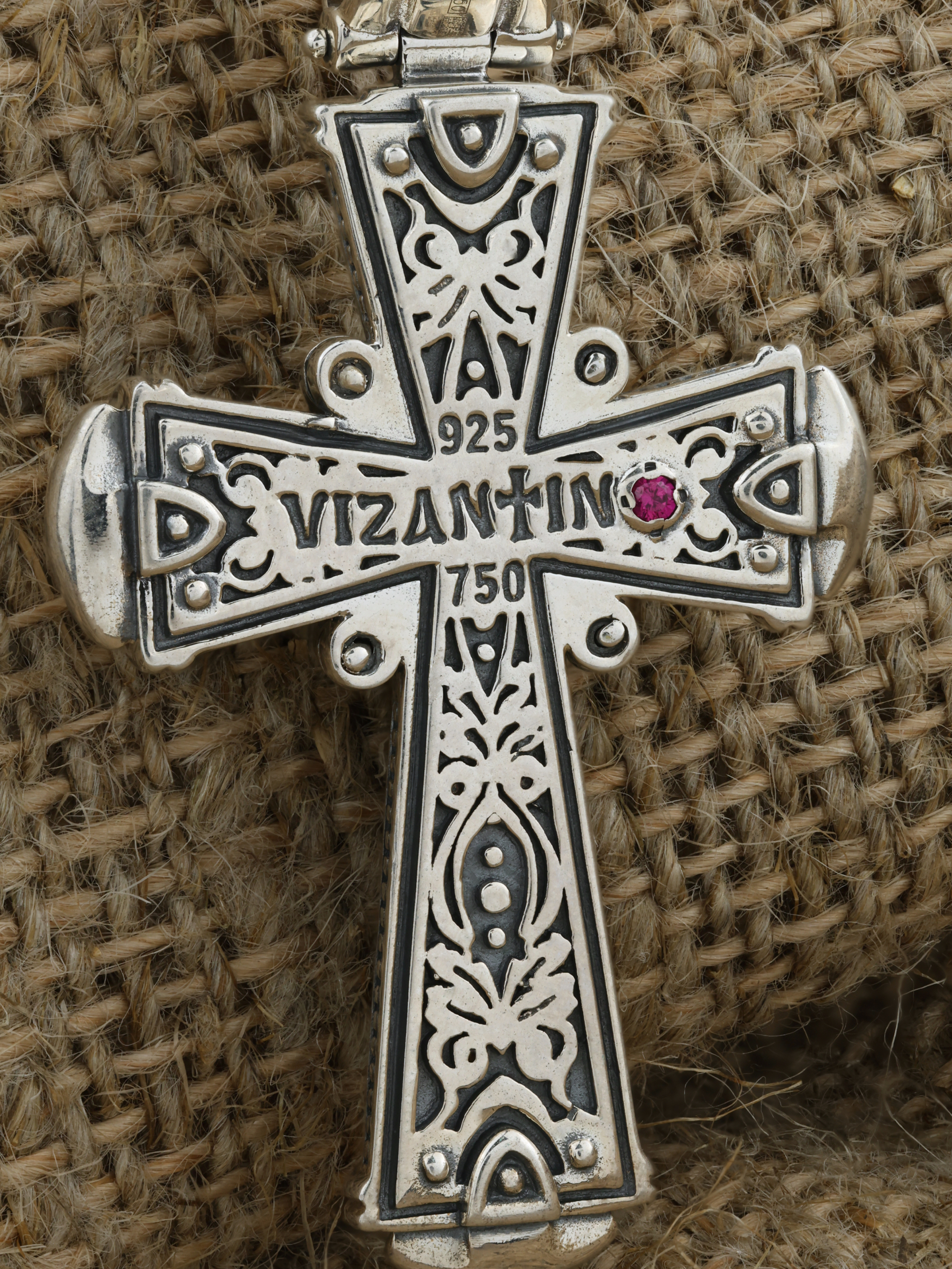 Крест из серебра и золота c ониксом и рубином