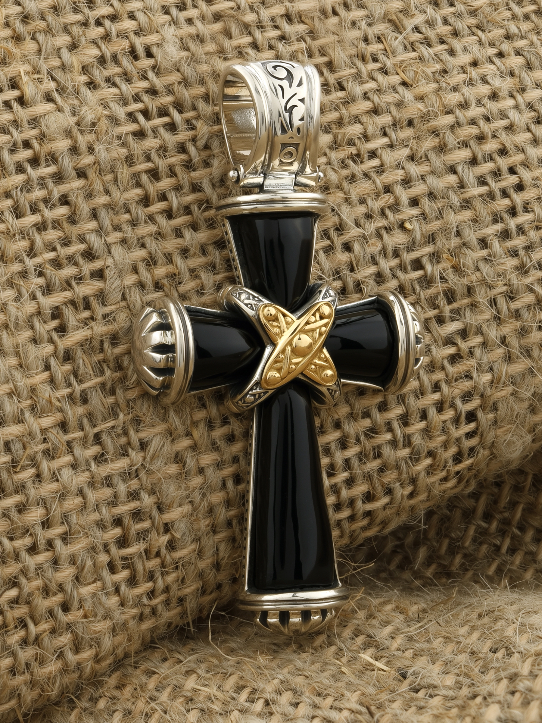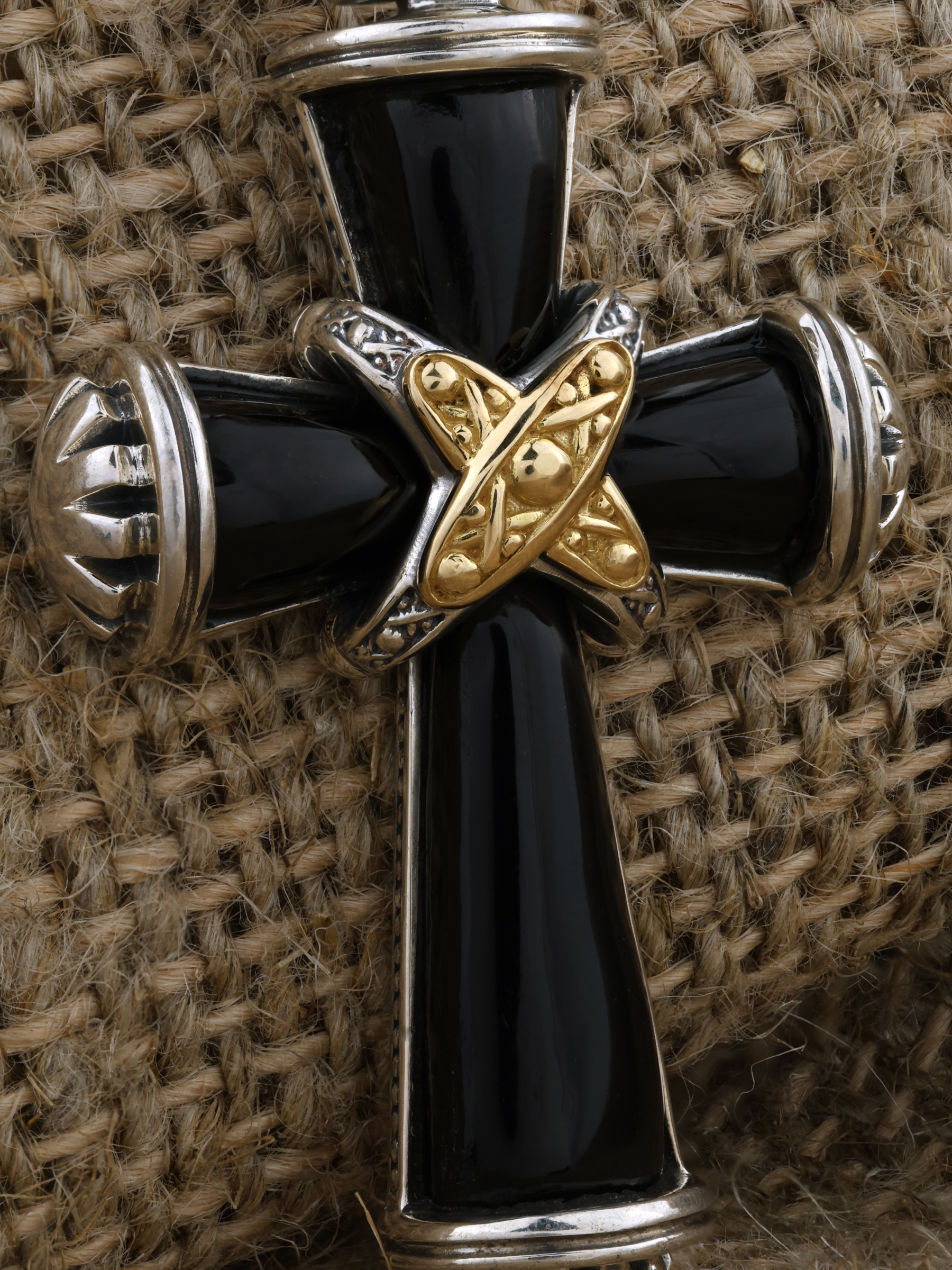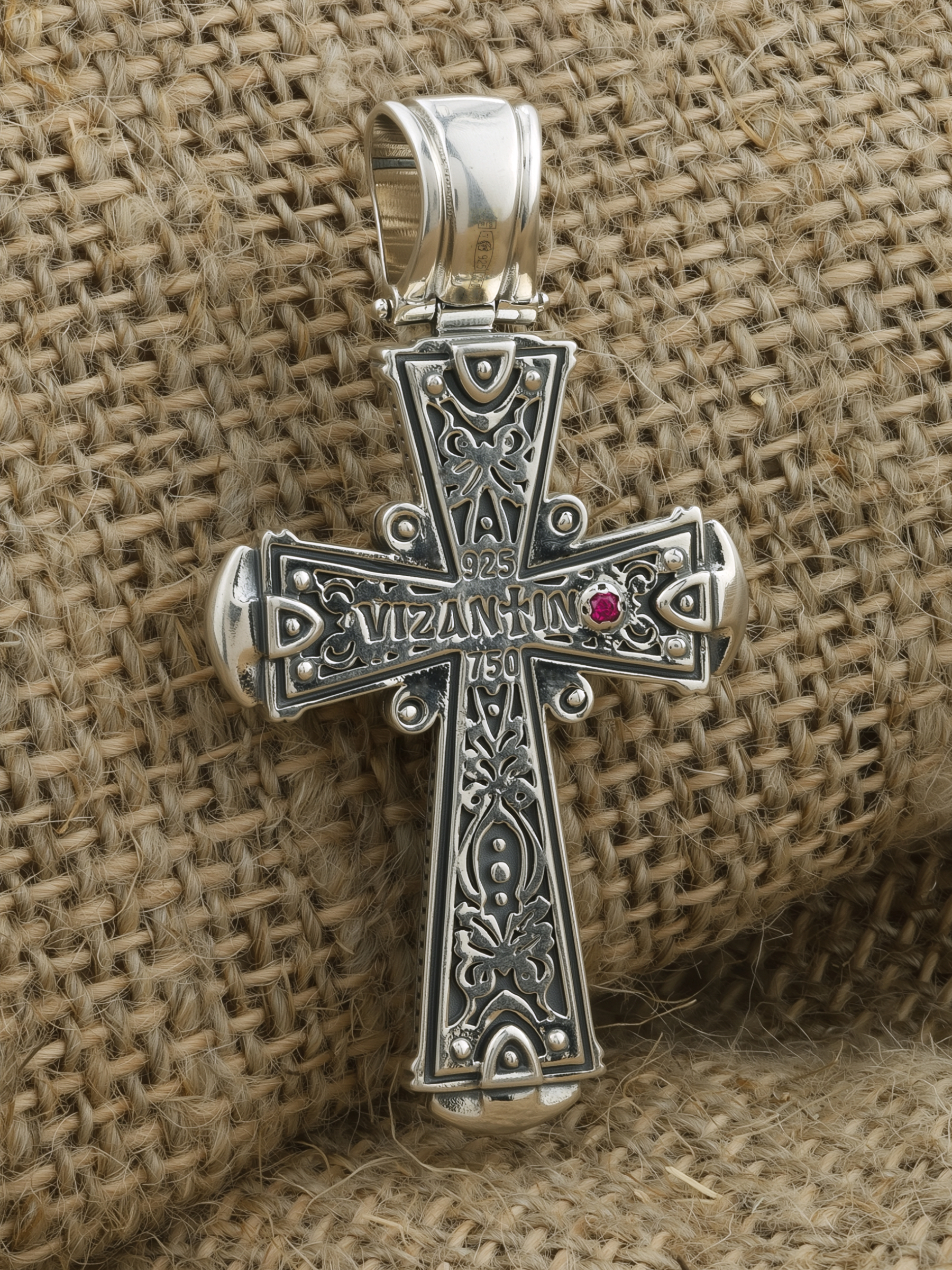 Крест из серебра и золота c ониксом и рубином